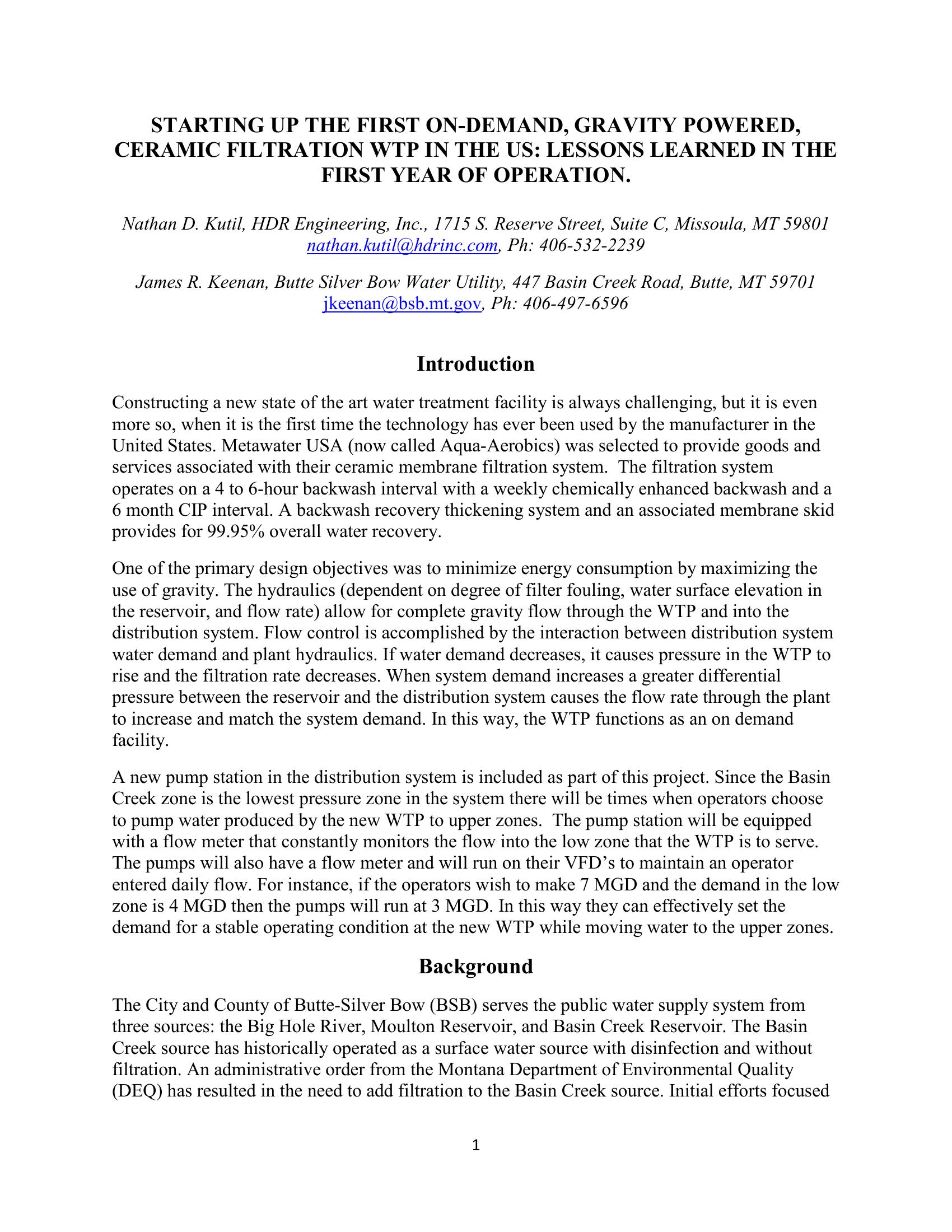 This presentation addresses the challenges encountered for controlling a truly on-demand WTP. Specific details for the new WTP hydraulics and the new ceramic membranes will be discussed. The focus will be on the start-up of the facility between substantial completion and the first year of operation. Specific details of what worked and what didn?t work will be addressed as well as lessons learned for how to better prepare for the next start-up of this size and complexity. Engineers, operators, and utility managers will benefit from this presentation by learning to be prepared for certain start-up nuances and best practices.
