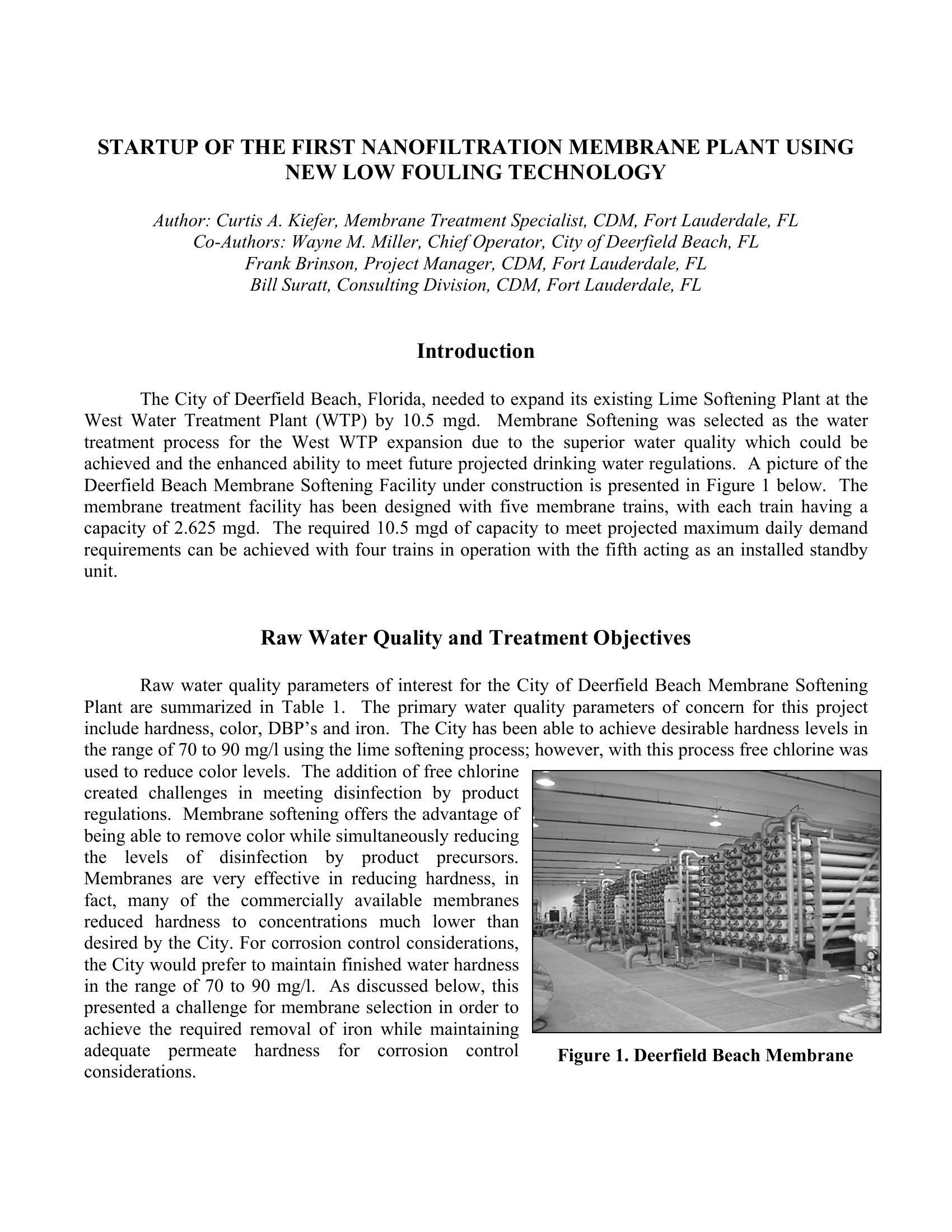 KeywordsDeerfield Beach, nanofiltration, plant design, pilot testing