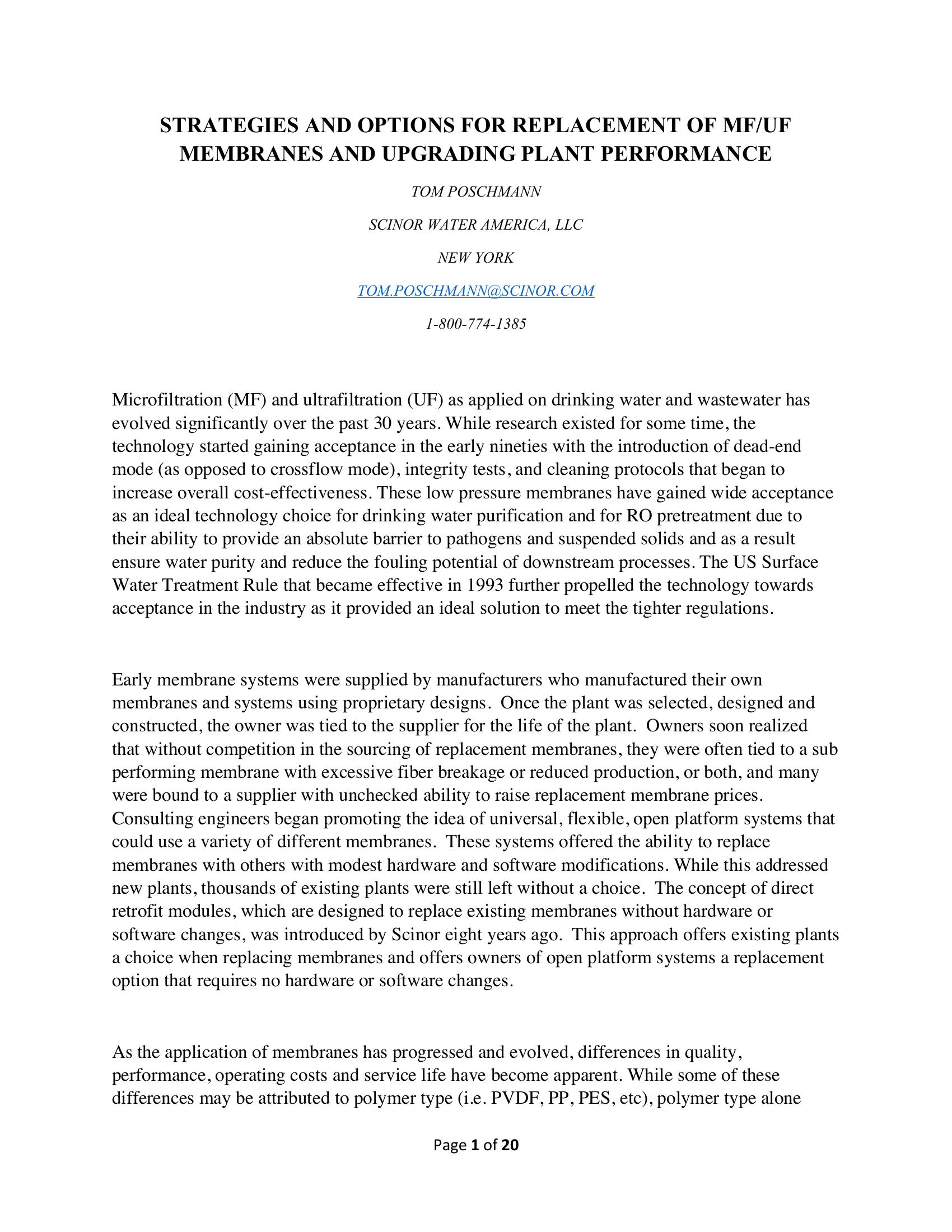 Strategies and Options for Replacement of MF/UF Membranes and Upgrading Plant Performance