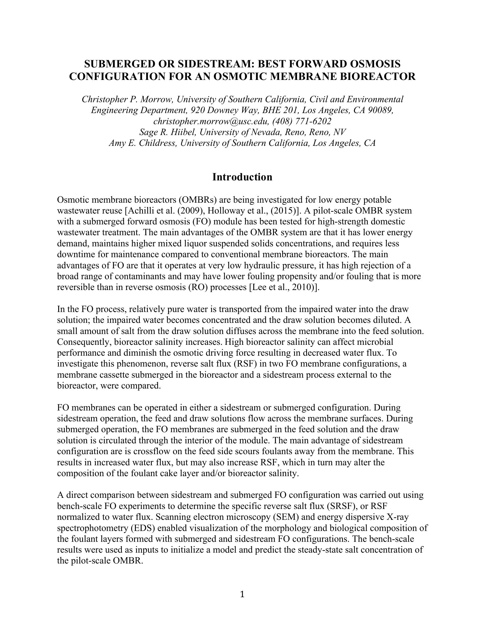 KeywordsMembrane, Forward Osmosis, MBR, Fouling, Reuse, Osmotic MBR