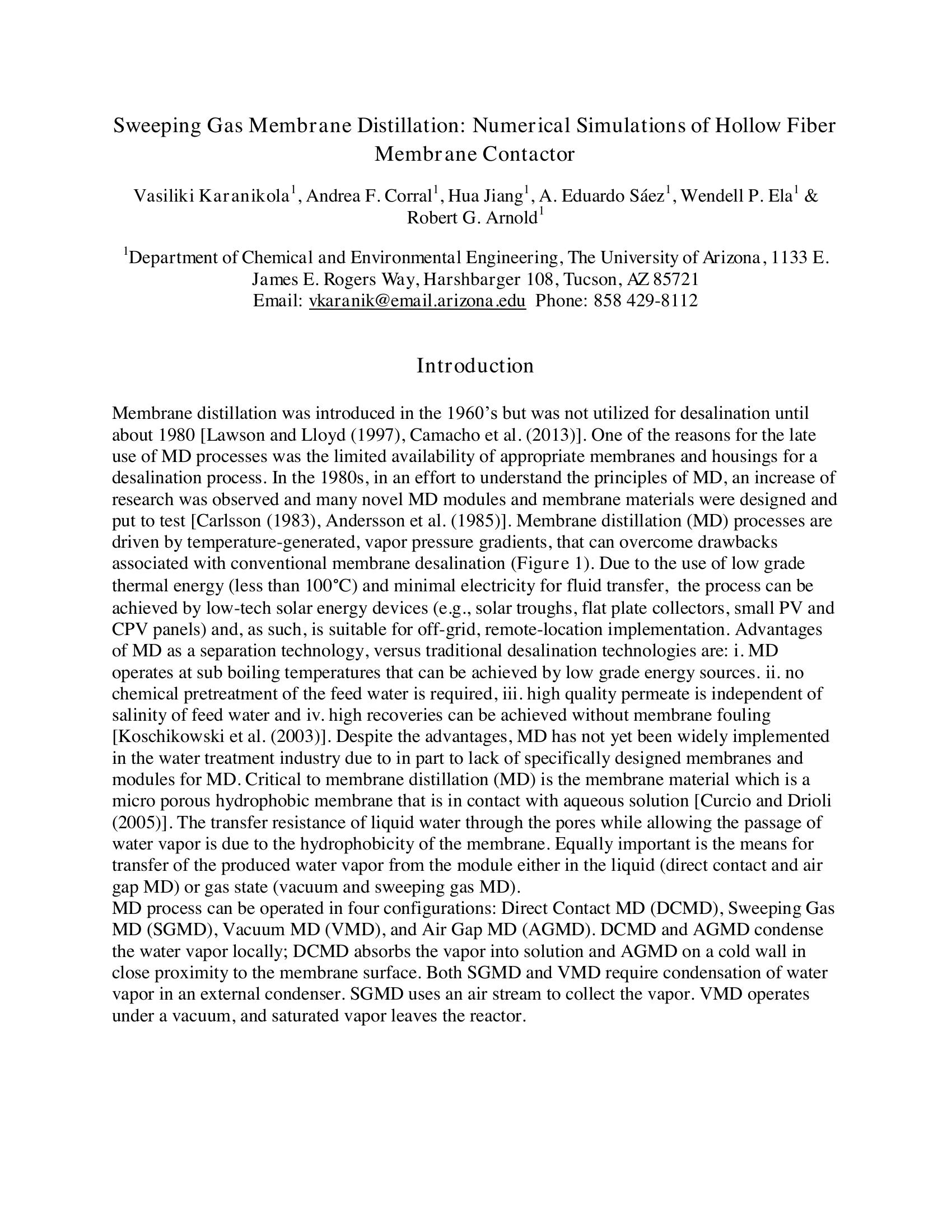KeywordsSweeping Gas, Heat Transfer, Hollow Fiber, Membrane distillation