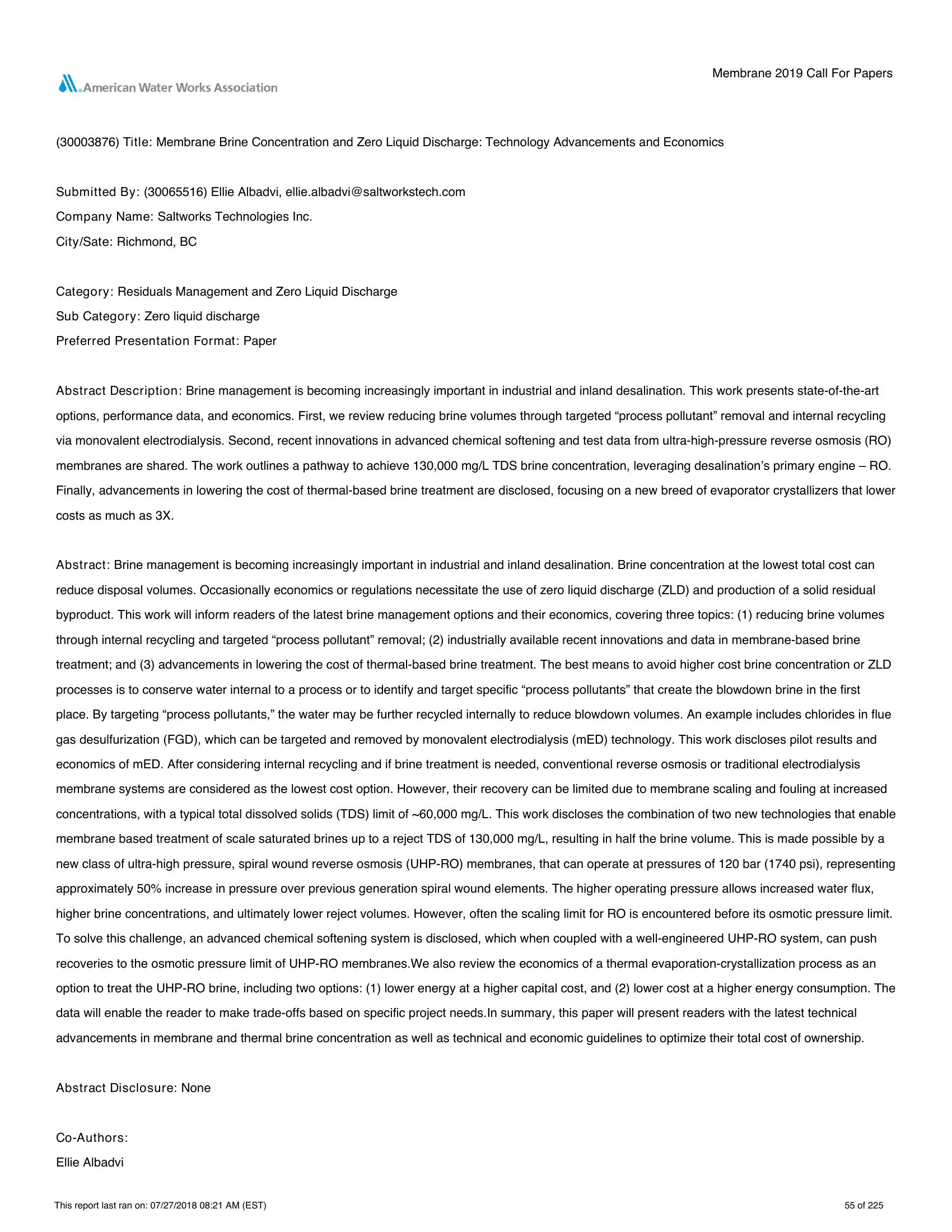 Brine management is becoming increasingly important in industrial and inland desalination. This work presents state-of-the-art options, performance data, and economics for an advanced chemical softening process (?BrineRefine?) and test data from ultra-high-pressure reverse osmosis (RO) membranes. The work outlines a pathway and cost analysis to achieve 130,000 mg/L total dissolved solids (TDS) brine concentration, leveraging desalination?s primary engine ? RO. Also, advancements in lowering the cost of thermal-based brine treatment are introduced. Two low temperature SaltMaker evaporator crystallizers are presented for final zero liquid discharge (ZLD): (1) SaltMaker MultiEffect recycles thermal energy input for energy efficiency and freshwater recovery; and (2) SaltMaker AirBreather evaporates freshwater to atmosphere.