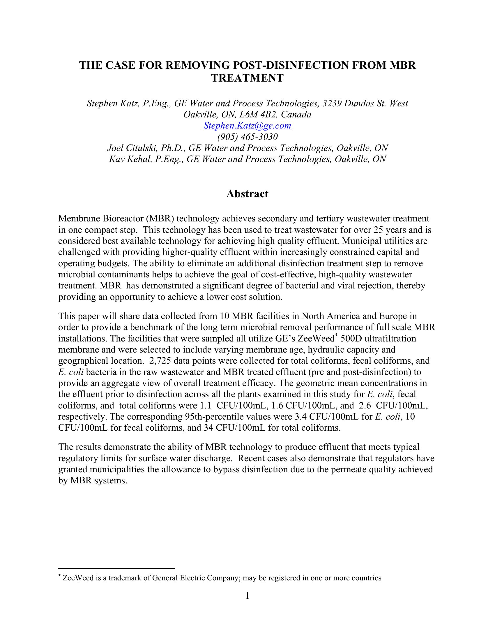 KeywordsMembrane Bioreactors (MBR), Effluent discharge regulations, Enterococcus Bacteria