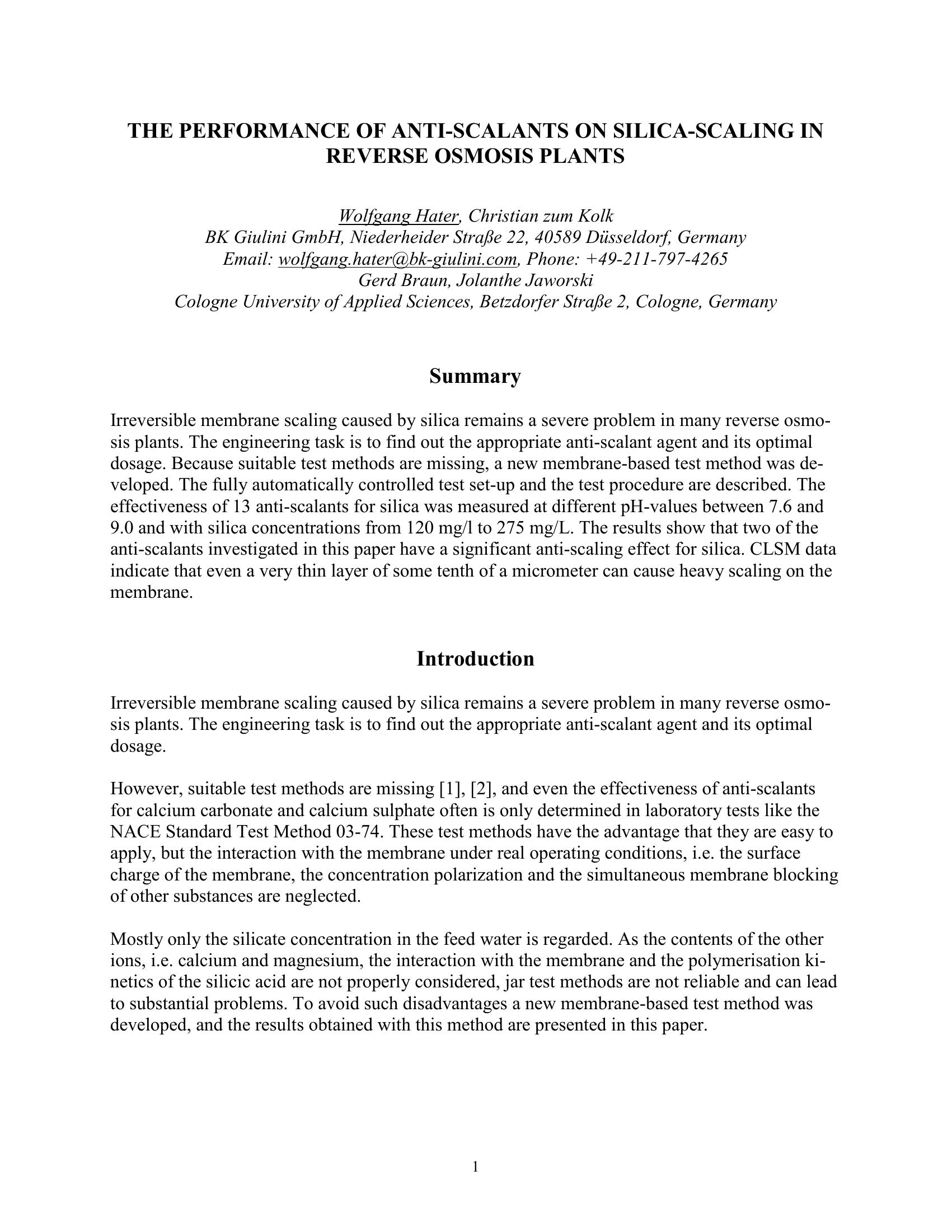 | Keywords | Anti-Scalants, Silica-Scaling, Reverse Osmosis |
