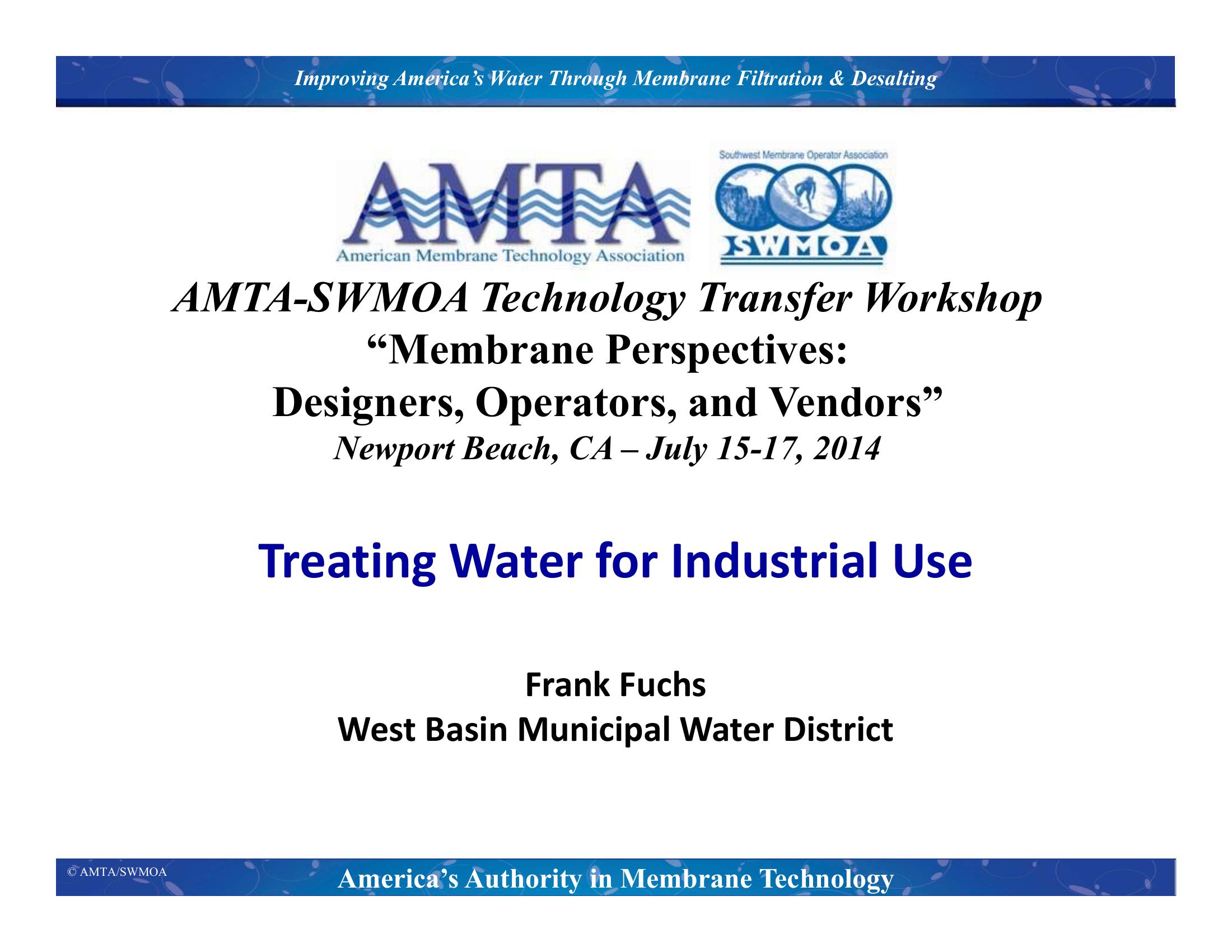 This presentation documents the treatment schemes used by the West Basin Municipal Water District to treat secondary effluent for industrial use and describes issues encountered with an existing microfiltration (MF) process. Alternatives for replacing the existing MF process with a new ultrafiltration (UF) process are discussed including a non-proprietary system design. Advantages and disadvantages for each alternative are provided, and the presentation concludes with an overview of the selected treatment approach.