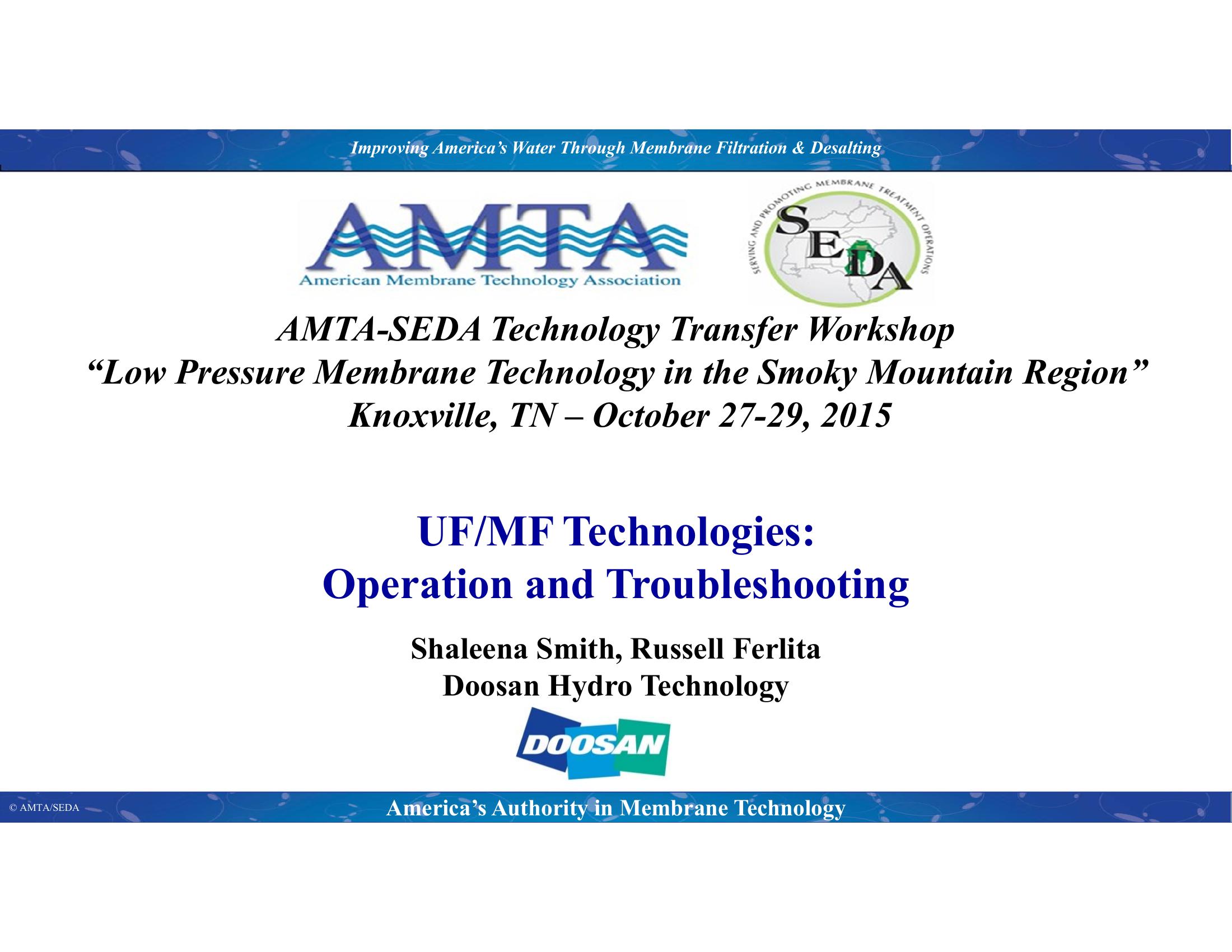 UF/MF Technologies: Operation and Troubleshooting