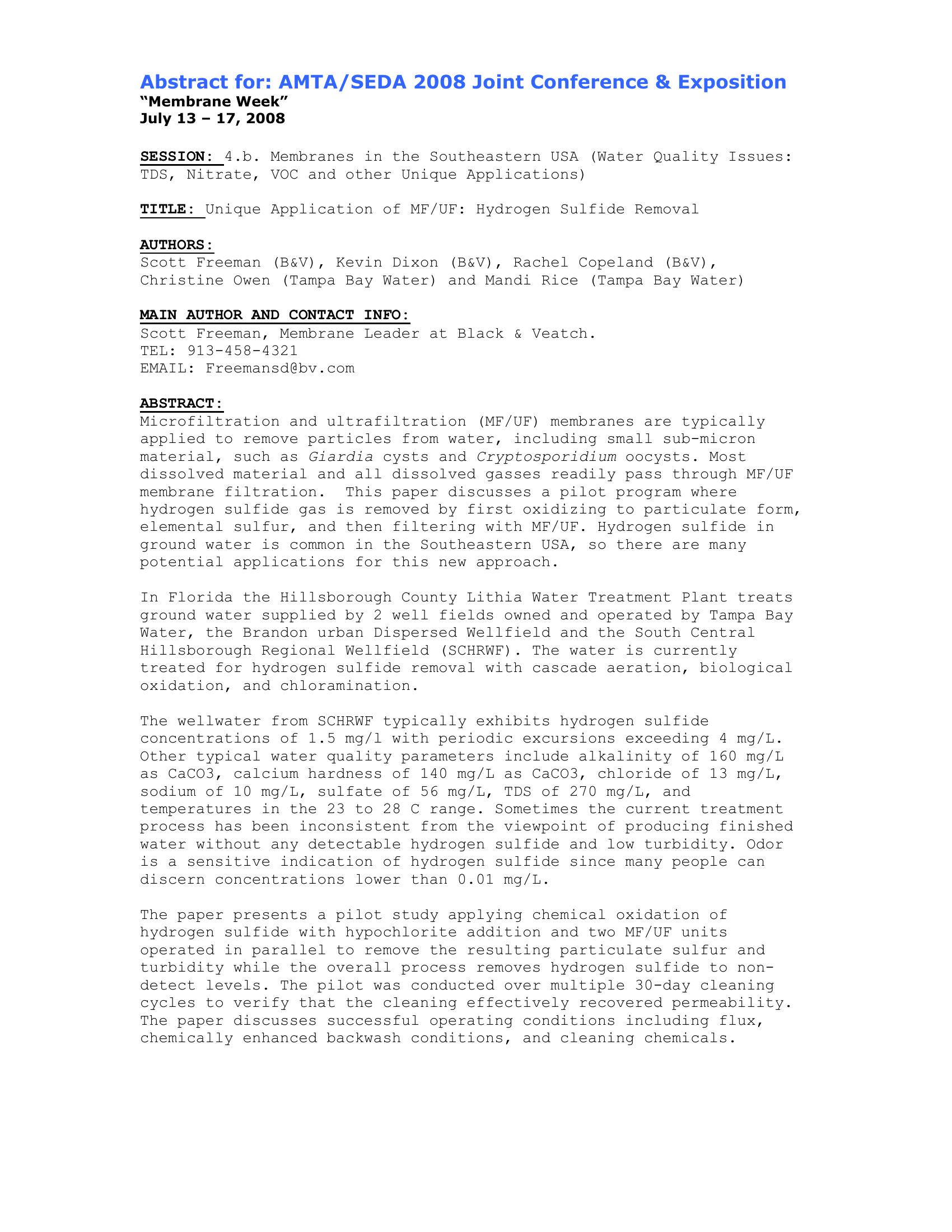 Unique Application of MF/UF: Hydrogen Sulfide Removal