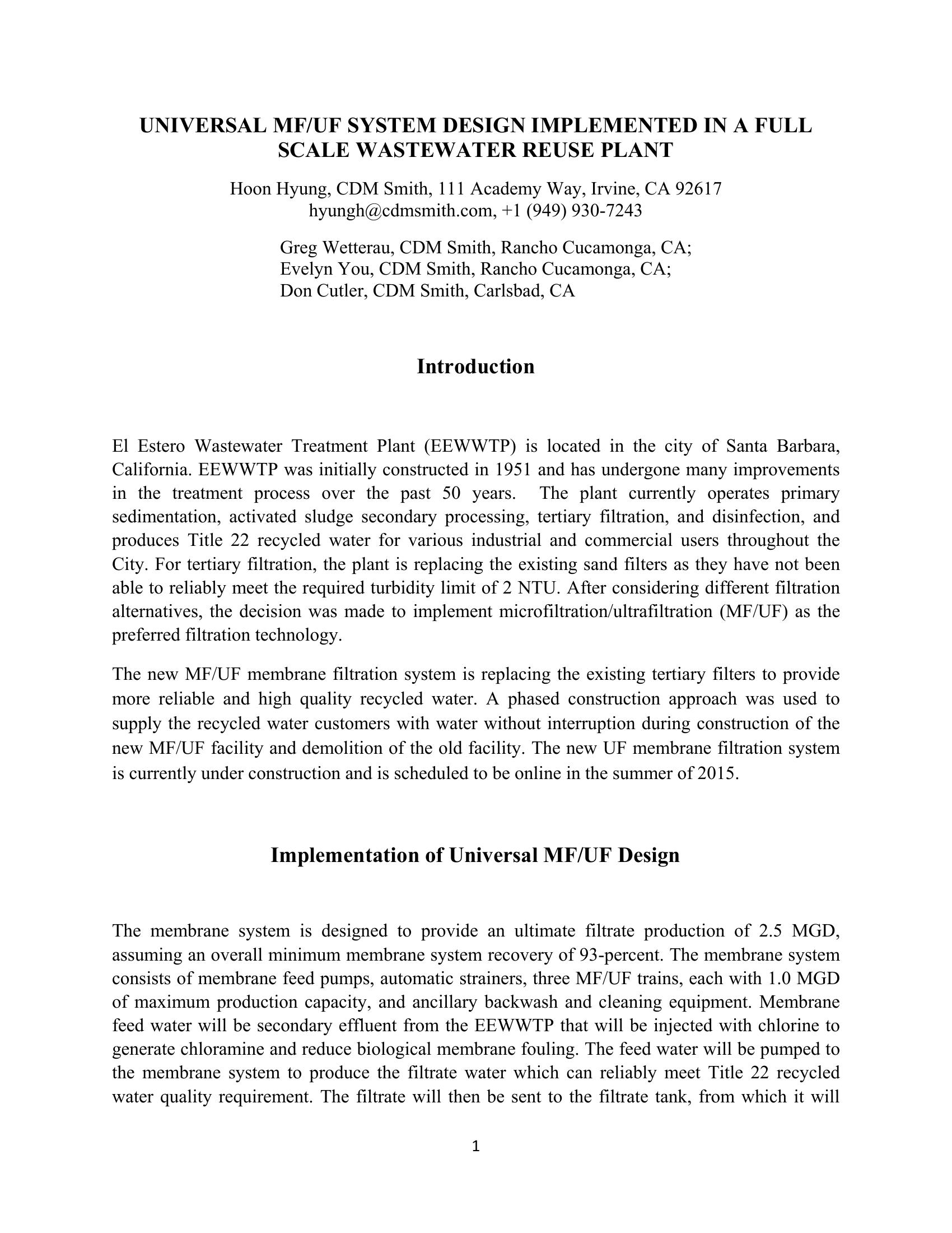 Universal MF/UF System Design Implemented in A Full Scale Wastewater Reuse Plant