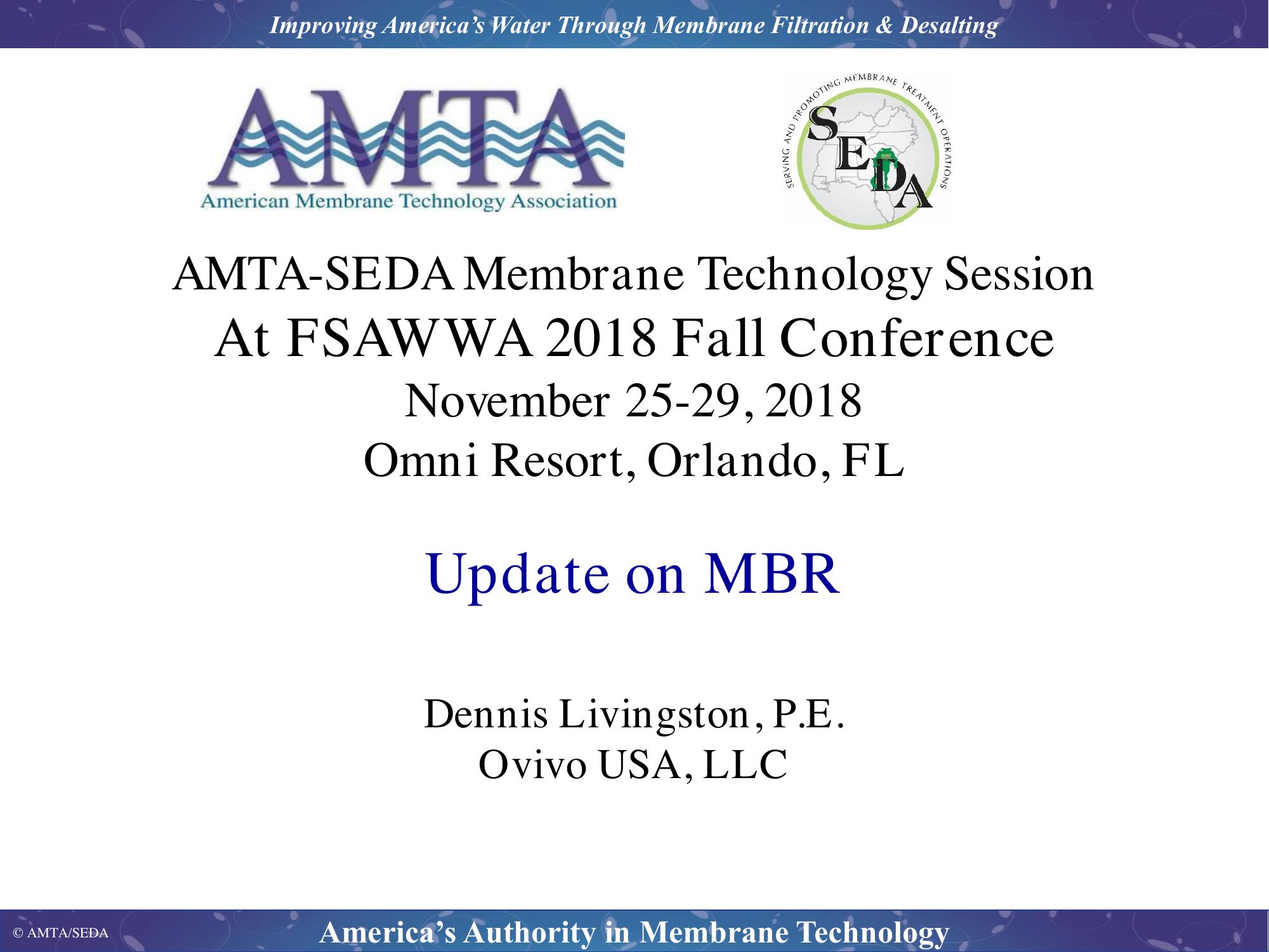 This presentation reviewed the current state of Membrane Bioreactors (MBR) in the United States. The paper discusses MBR trends and reviews issues around clogging. There is a section on silicon carbide membranes and hybrid polymeric technology.