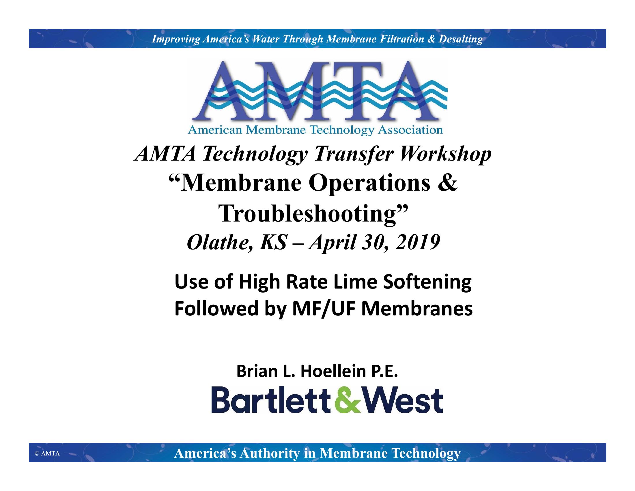 This presentation will focus on the use of high rate lime softening process followed by UF membrane filtration. Two plants use surface water, while a thrid uses a groundwater source. The presentation will provide information on why this treatment process was chosen, design considerations, contruction and start up, and operational information.