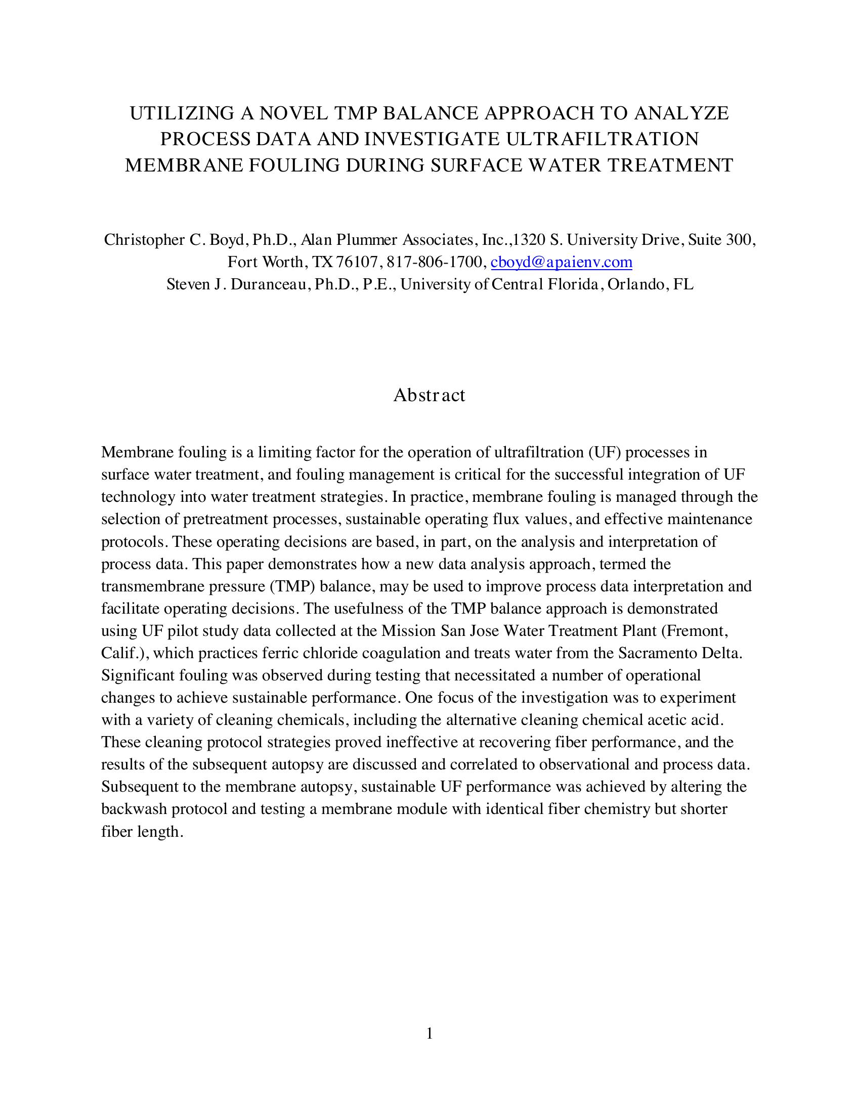 | Keywords | TMP Balance Approach, Membrane Fouling, Ultrafiltration |