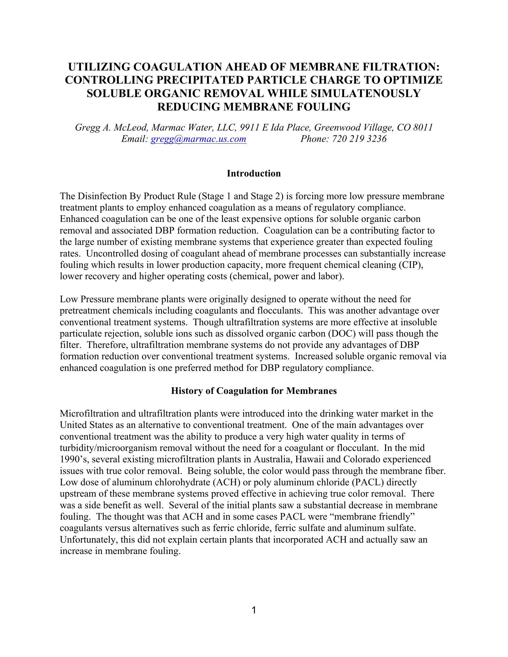 Utilizing Coagulation Ahead of Membrane Filtration:Controlling Precipitated Particle Charge to Optimize Organic Removal While Simultaneously Reducing Membrane Fouling