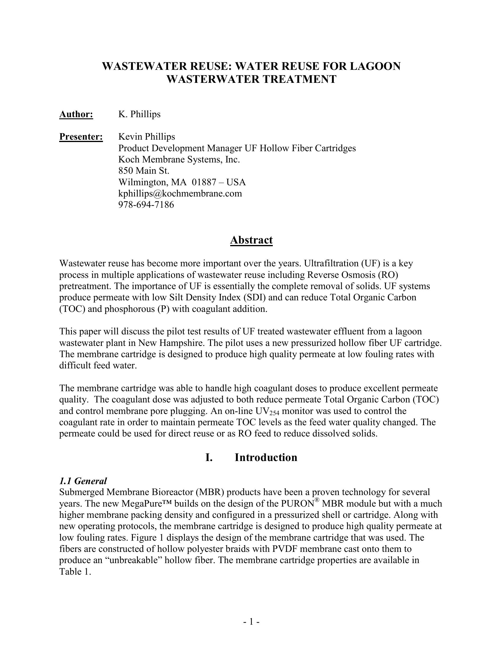 | Keywords | Wastewater, Reuse, Treatment, Ultafiltration, Coagulant |
