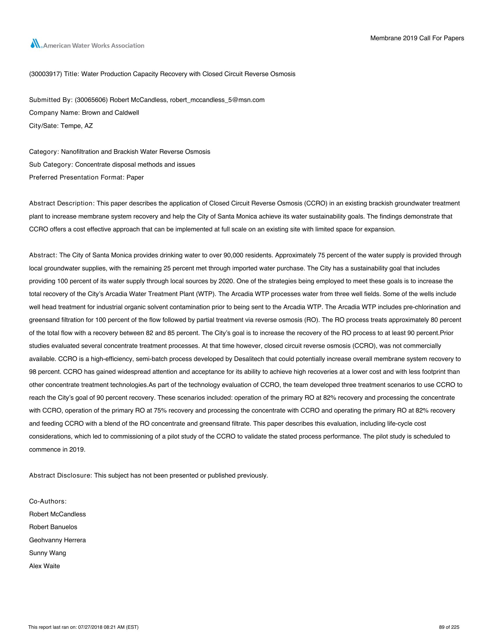 | Keywords | Increased Recovery, Innovative Technology, Reverse Osmosis |