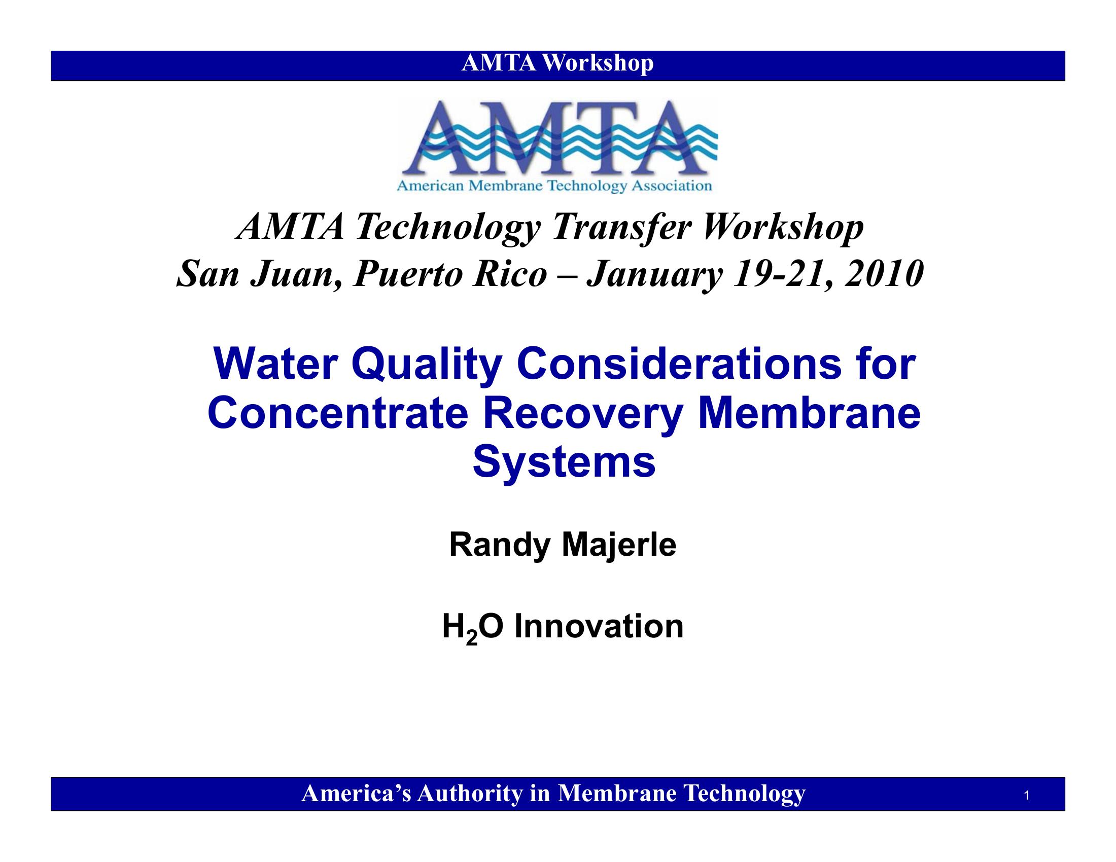 Water Quality Considerations for Concentrate Recovery Membrane Systems