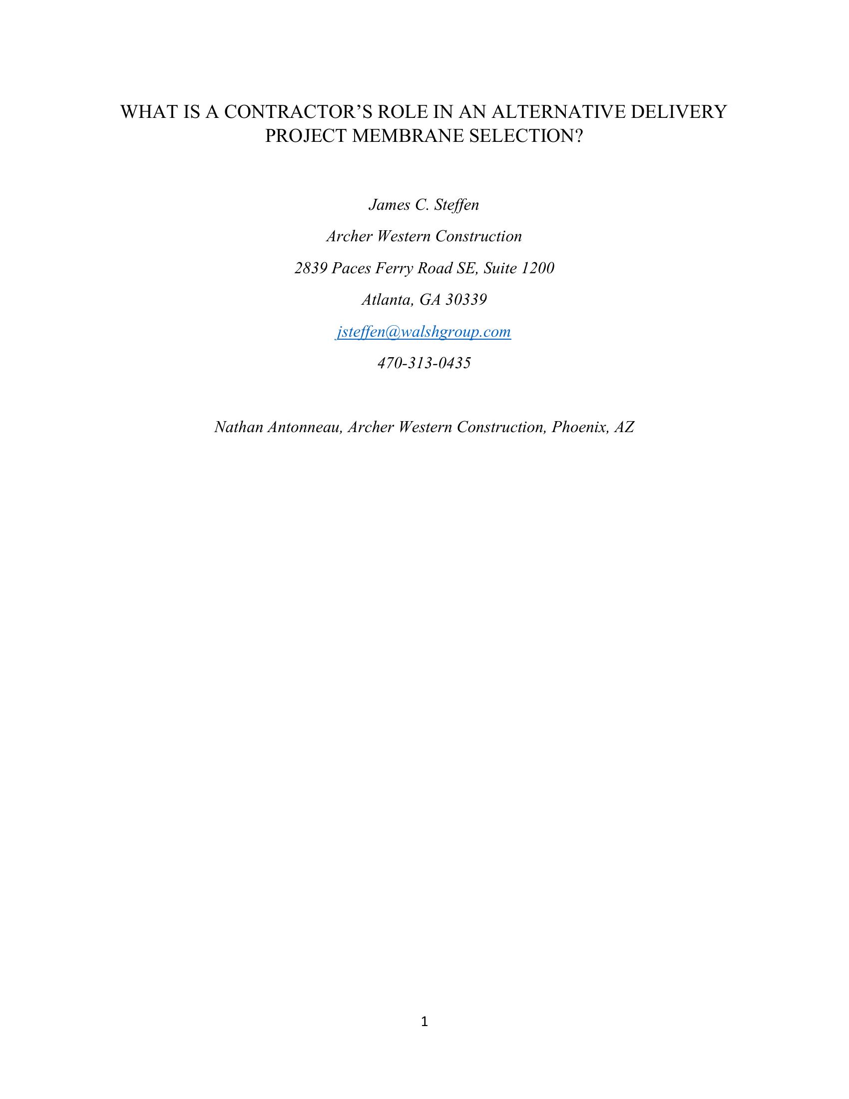 What is a Contractor’s Role in an Alternative Delivery Project Mebrane Selection?