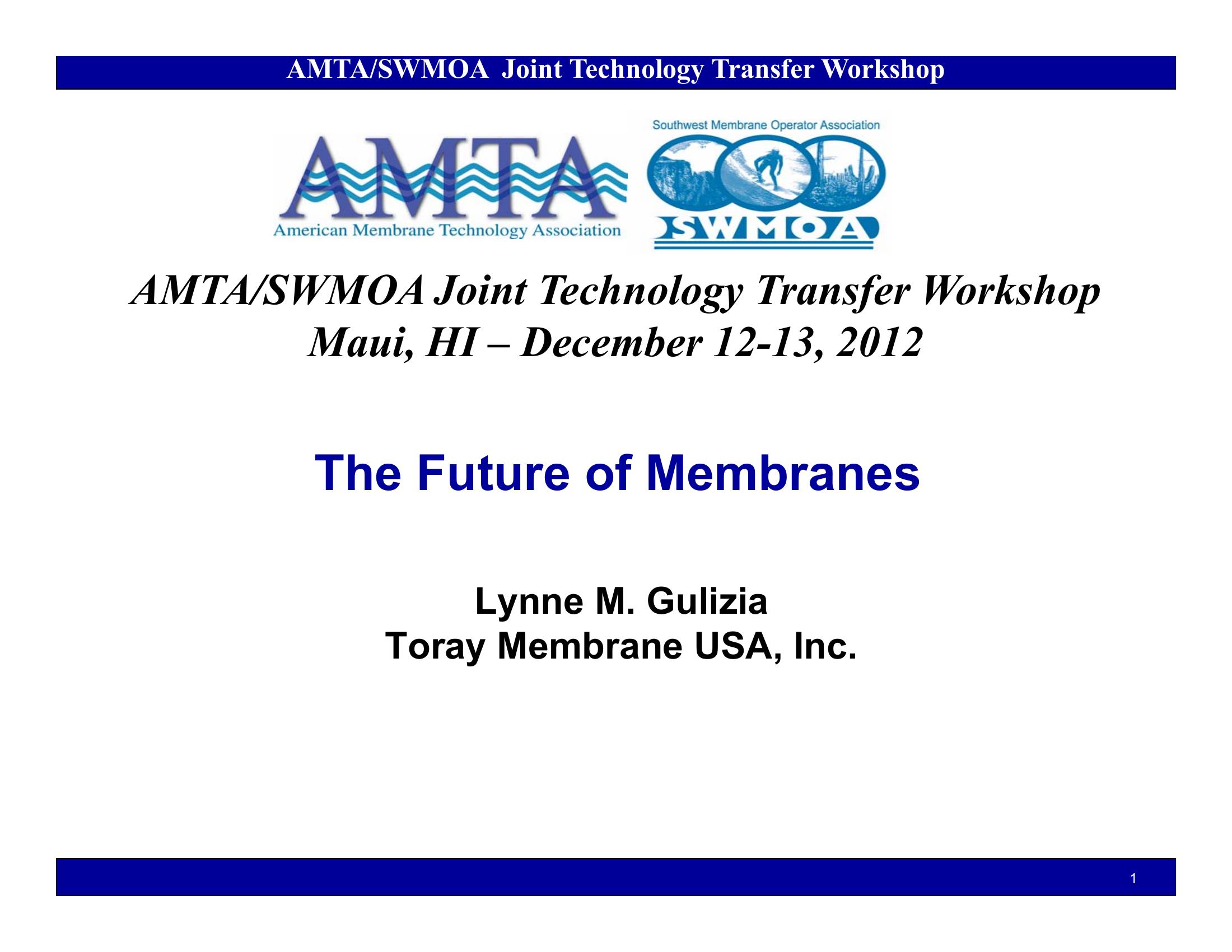 This PowerPoint presentation discusses emerging technologies for membrane filtration as seen in 2012.