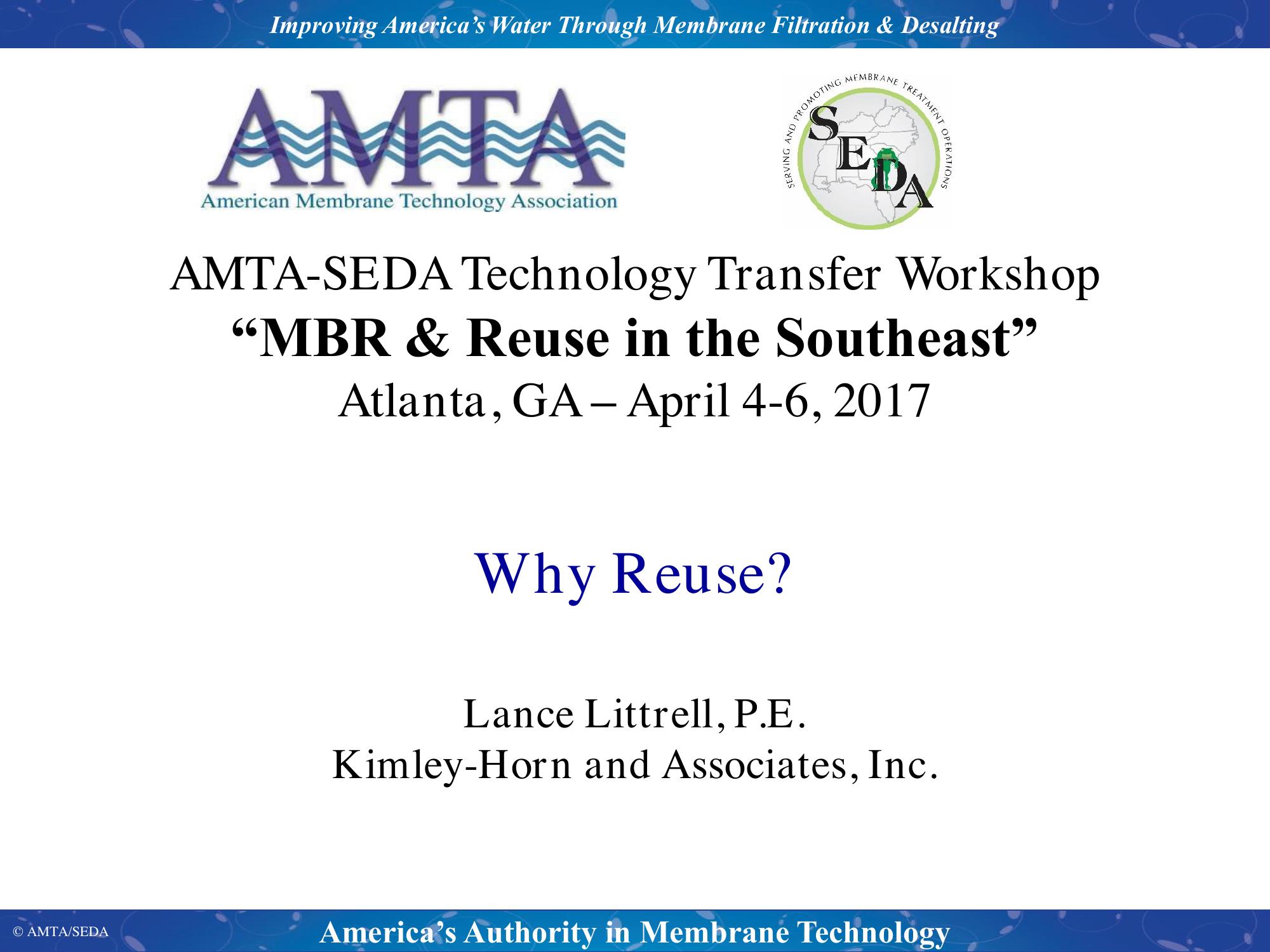 The presentation will look at reuse with the focus of identifying what factors influence the utility’s decisions to proceed with reuse. A historic look at the early features of reuse will highlight municipalities across the nation whom have integrated reuse into their utility offerings, credits gained from the integration of reuse into their utlity, opportunities available from their reuse system, funding mechanisms and benifets realized in the water and wastewater utility. A future perspective of where reuse is going and the impacts it will have across the utlity industry as a whole will be presented from the perspective of several pioneering utilities.
