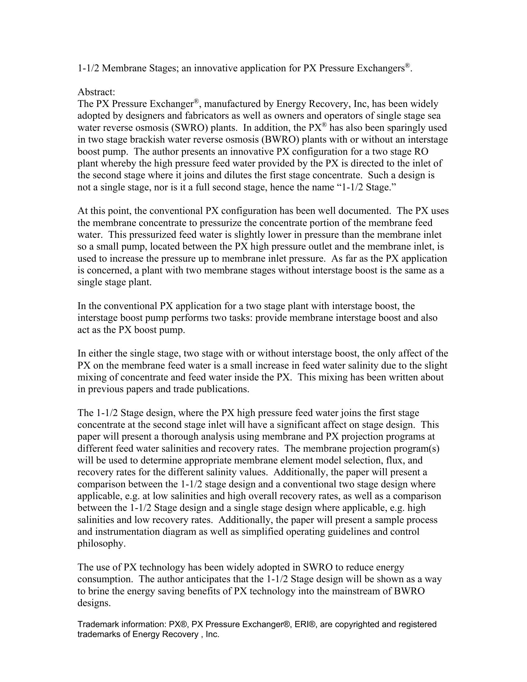 1-1/2 Membrane Stages; an Innovative Application for PX Pressure Exchangers
