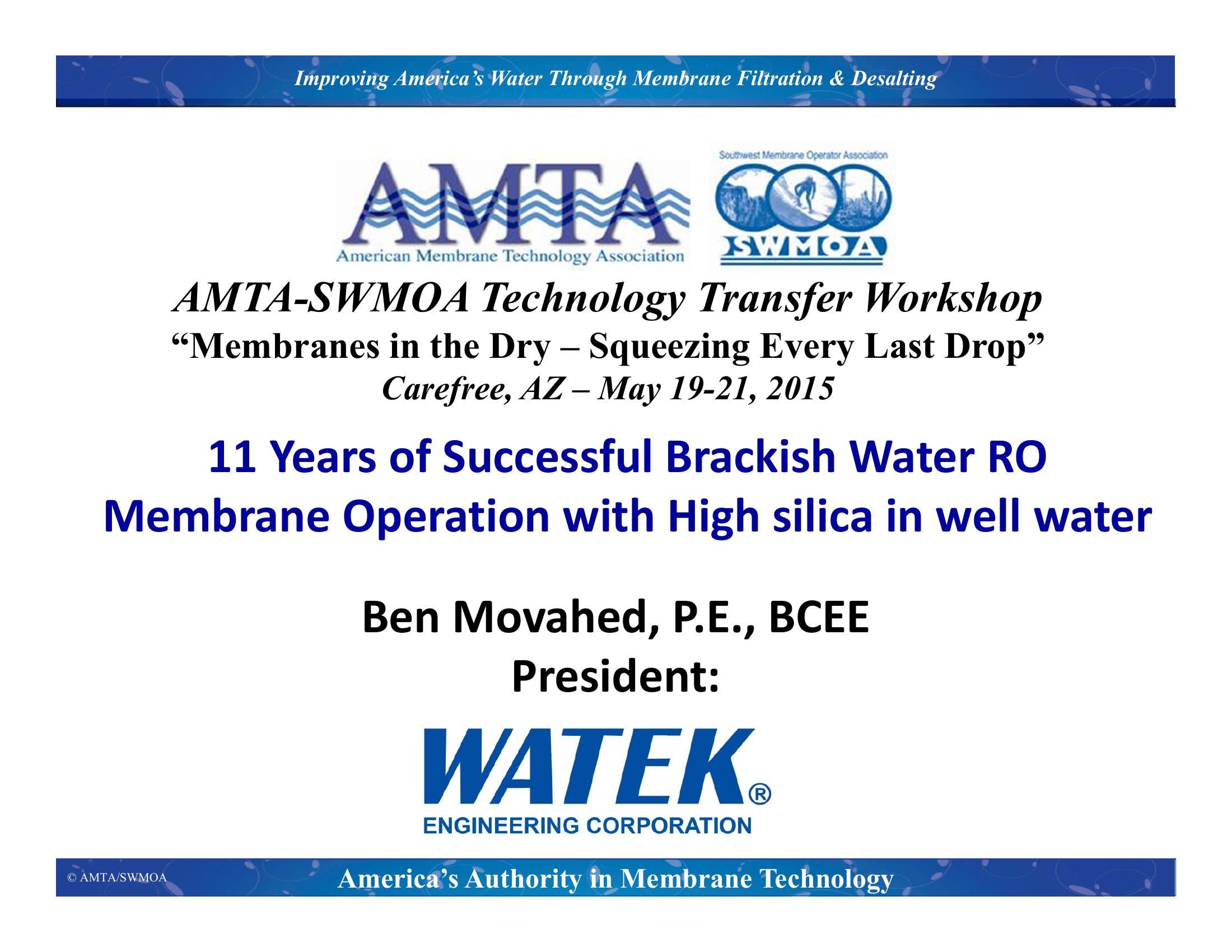 KeywordsReverse Osmosis, Brackish Water RO, High Silica