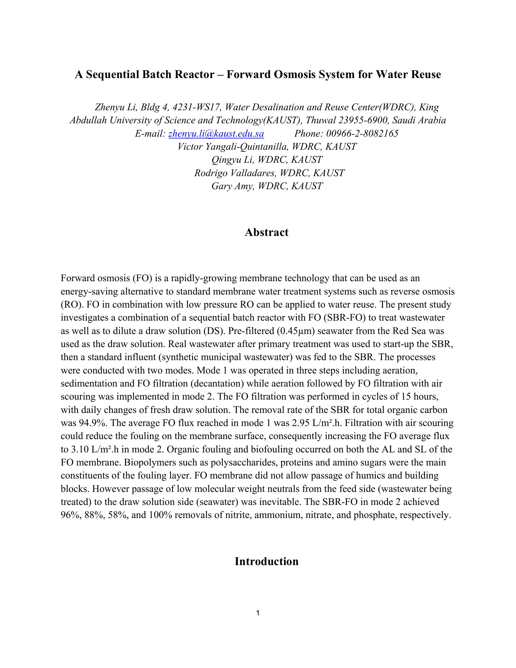 | Keywords | Batch Reactor, Forward Osmosis, Water Reuse |