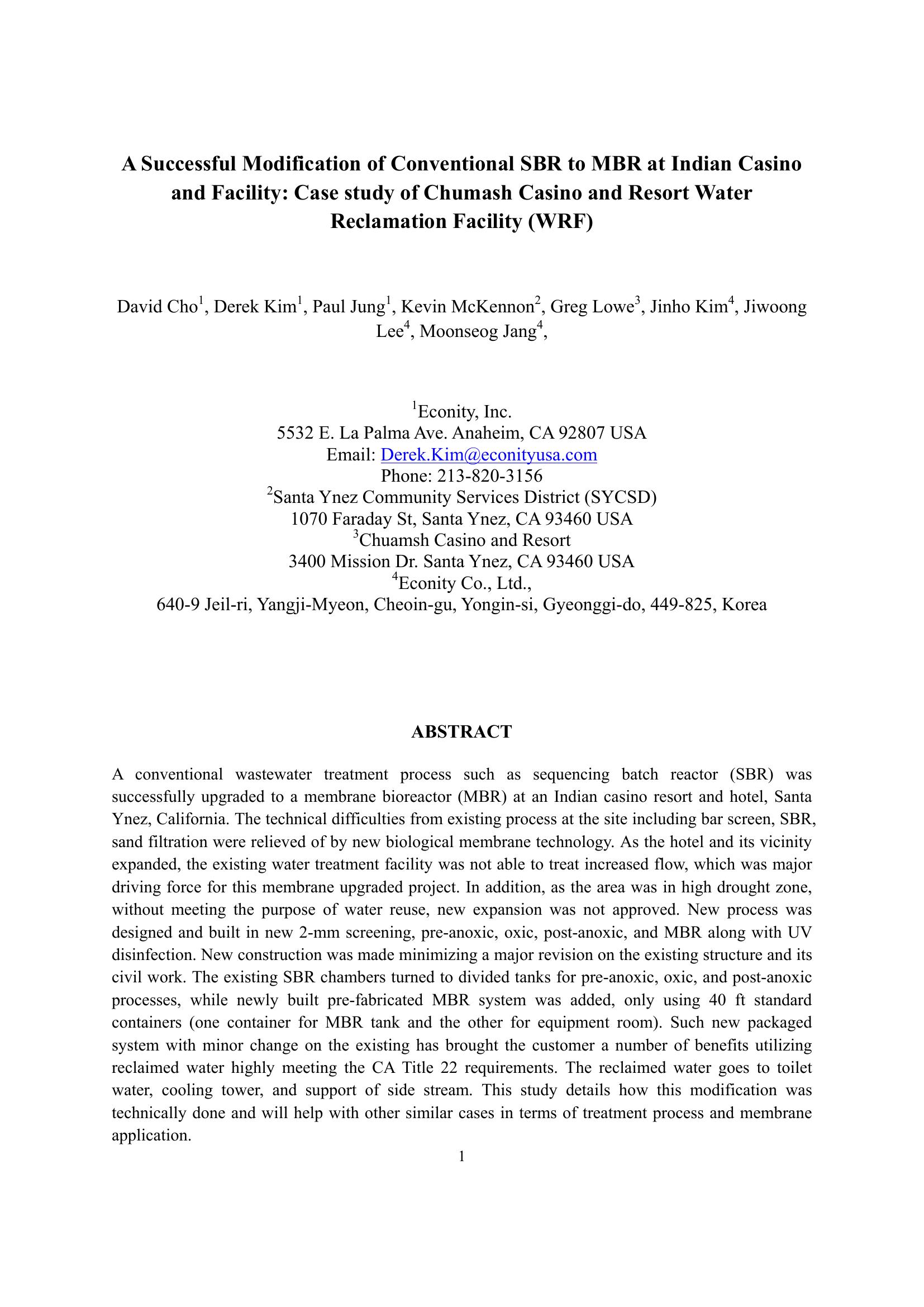 A Successful Modification of Conventional SBR to MBR at Indian Casino and Facility: Case study of Chumash Casino and Resort Water Reclamation Facility (WRF)