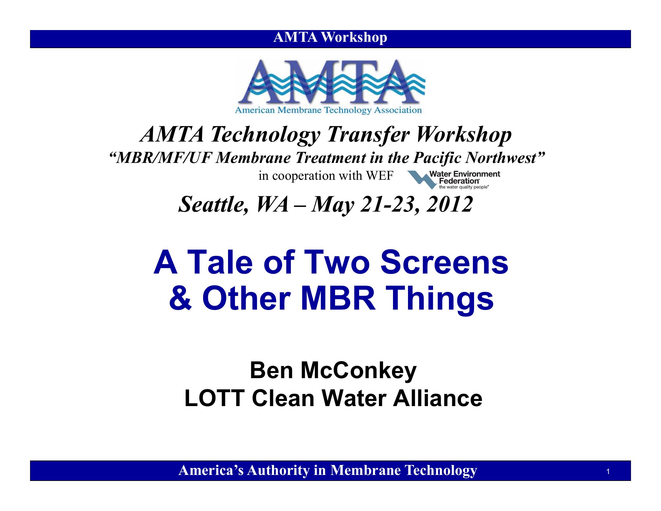 This presentation describes operational issues with a water r3eclamation plant that includes membrane bioreactors. Problems were experienced with rapid flux decline. The problem was traced to the screen size which was replaced with a smaller screen. Problem solved.