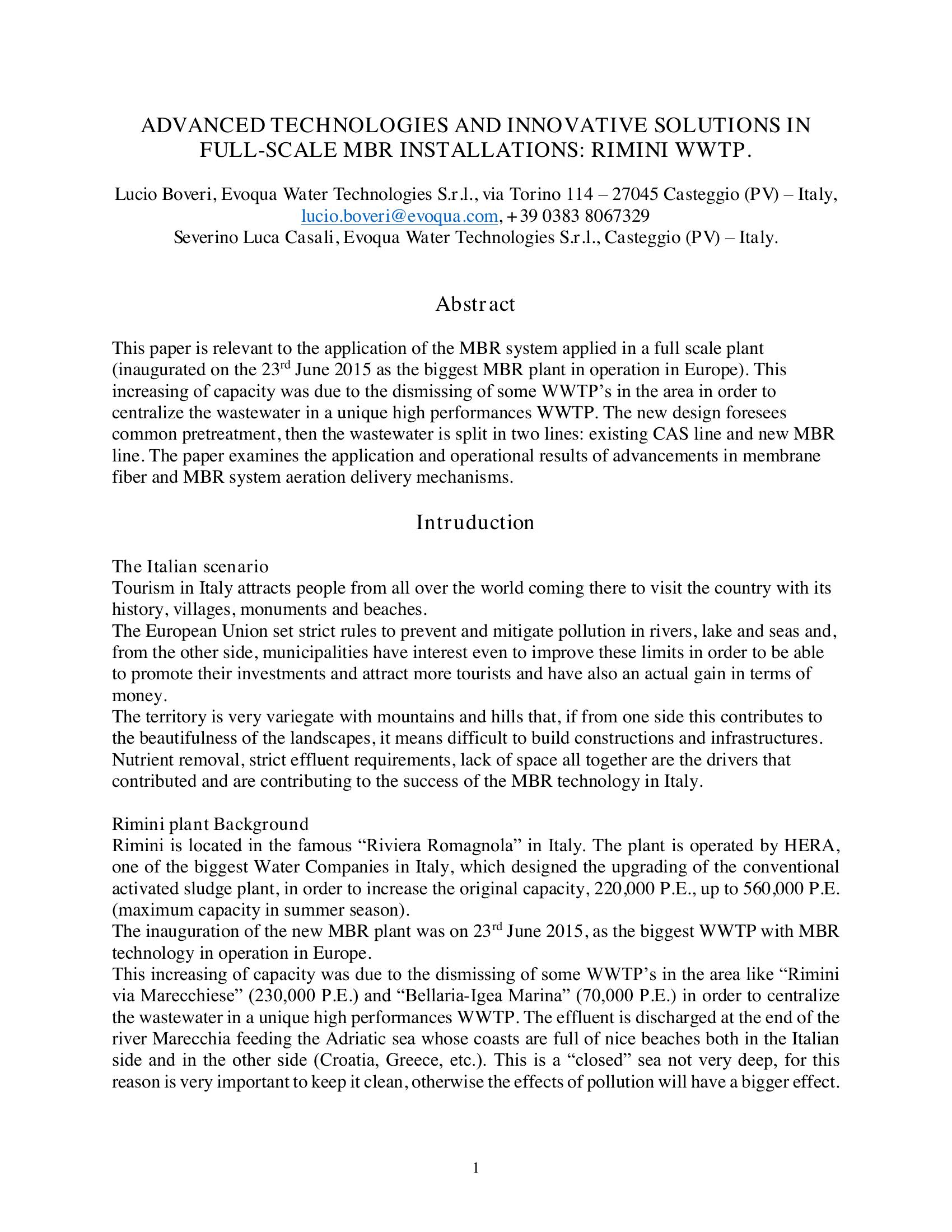| Keywords | Rimini, MBR, membrane bioreactor, centralization |