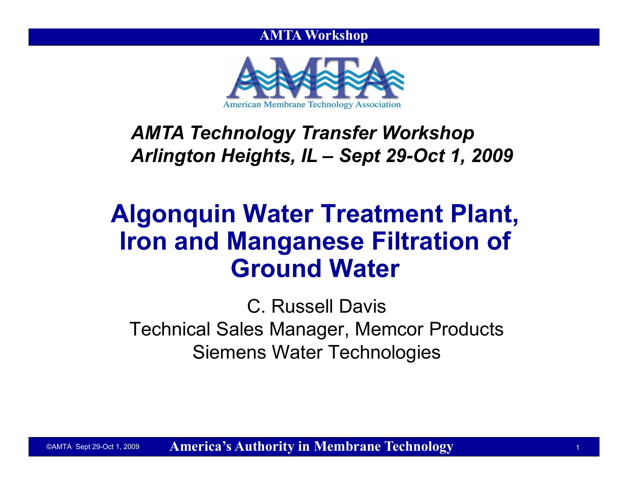 A case study of the implementation of the Algonquin Water Treatment Plant. This facility uses membrane filtration technology to remove iron and manganese from shallow groundwater.