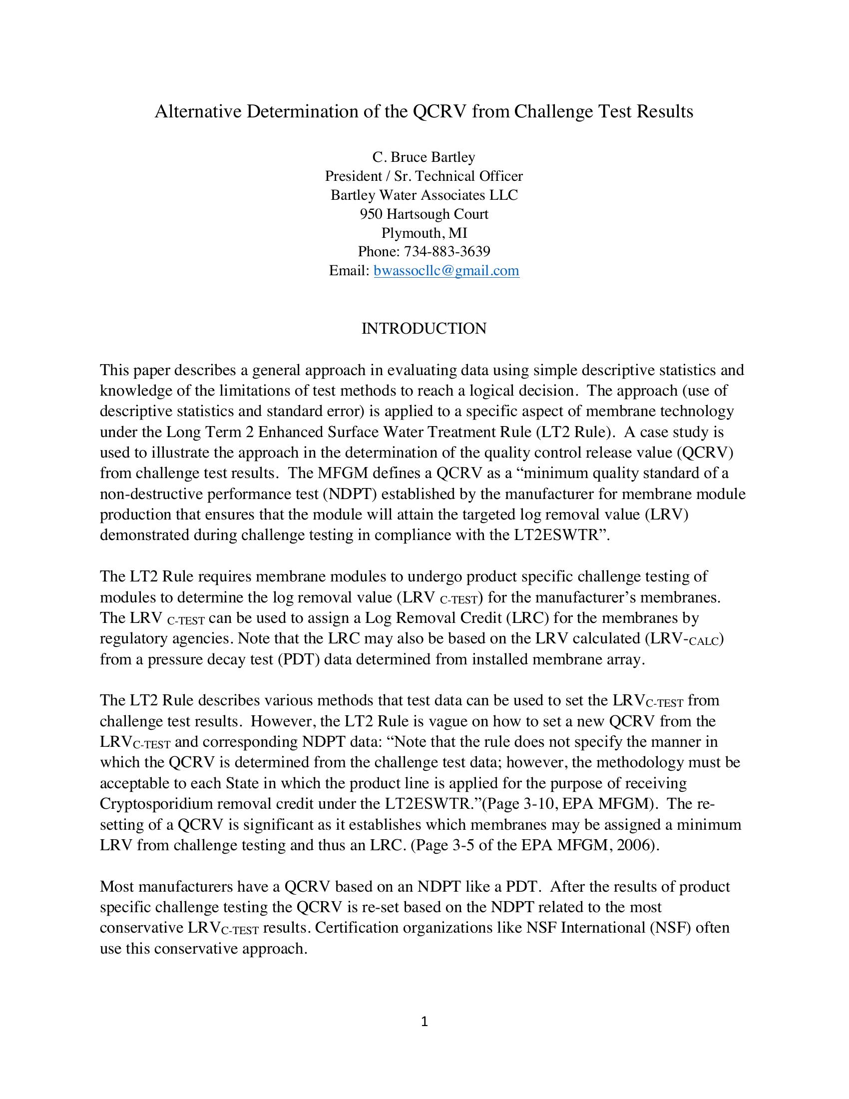 This paper describes an evaluation of data using simple descriptive statistics and knowledge of the limitations of test methods to reach a logical decision and is applied to a specific aspect of membrane technology under the Long Term 2 Enhanced Surface Water Treatment Rule . A case study is used to illustrate the approach in the determination of the quality control release value (QCRV) from challenge test results.