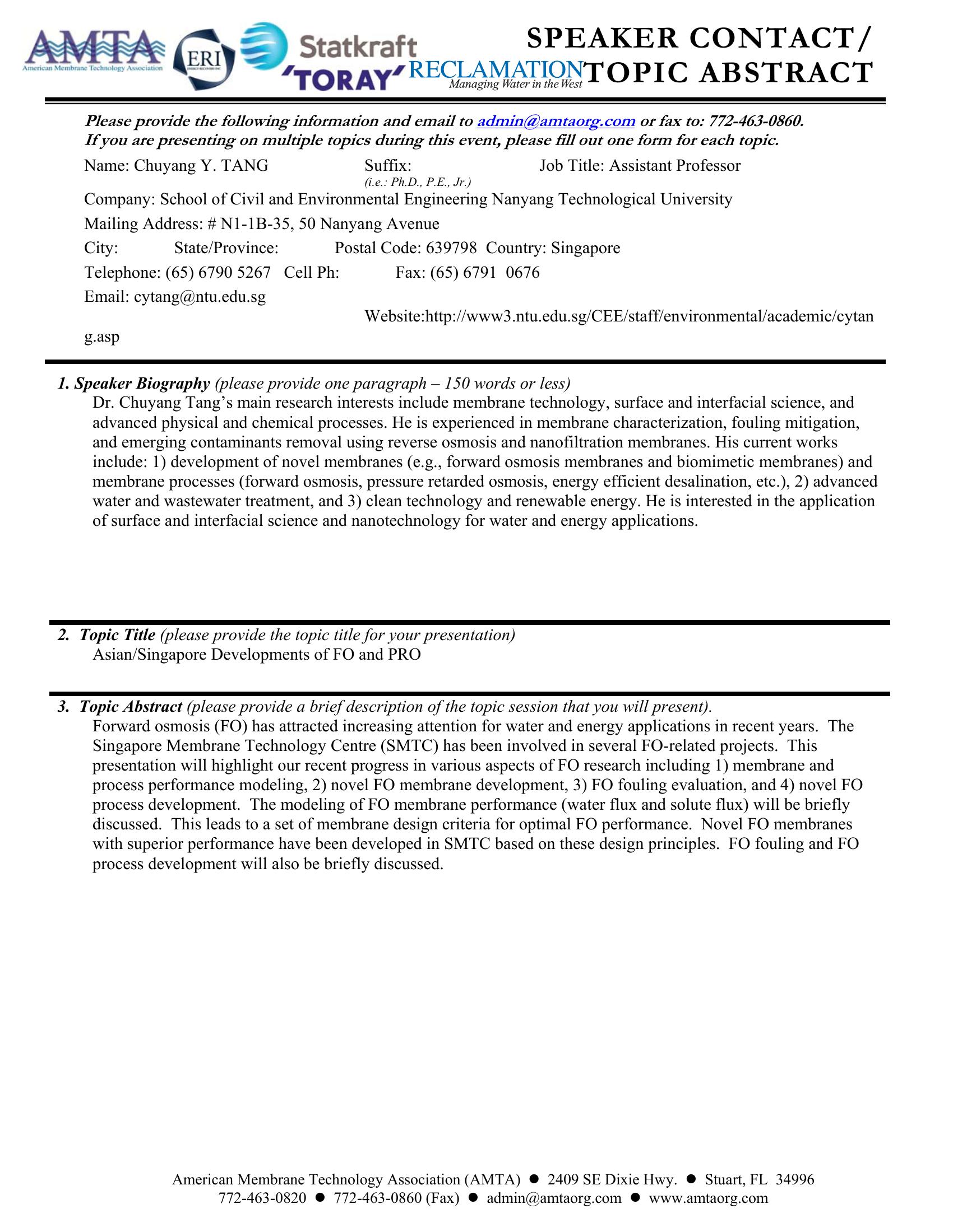 | Keywords | forward osmosis, pressure retarded osmosis |