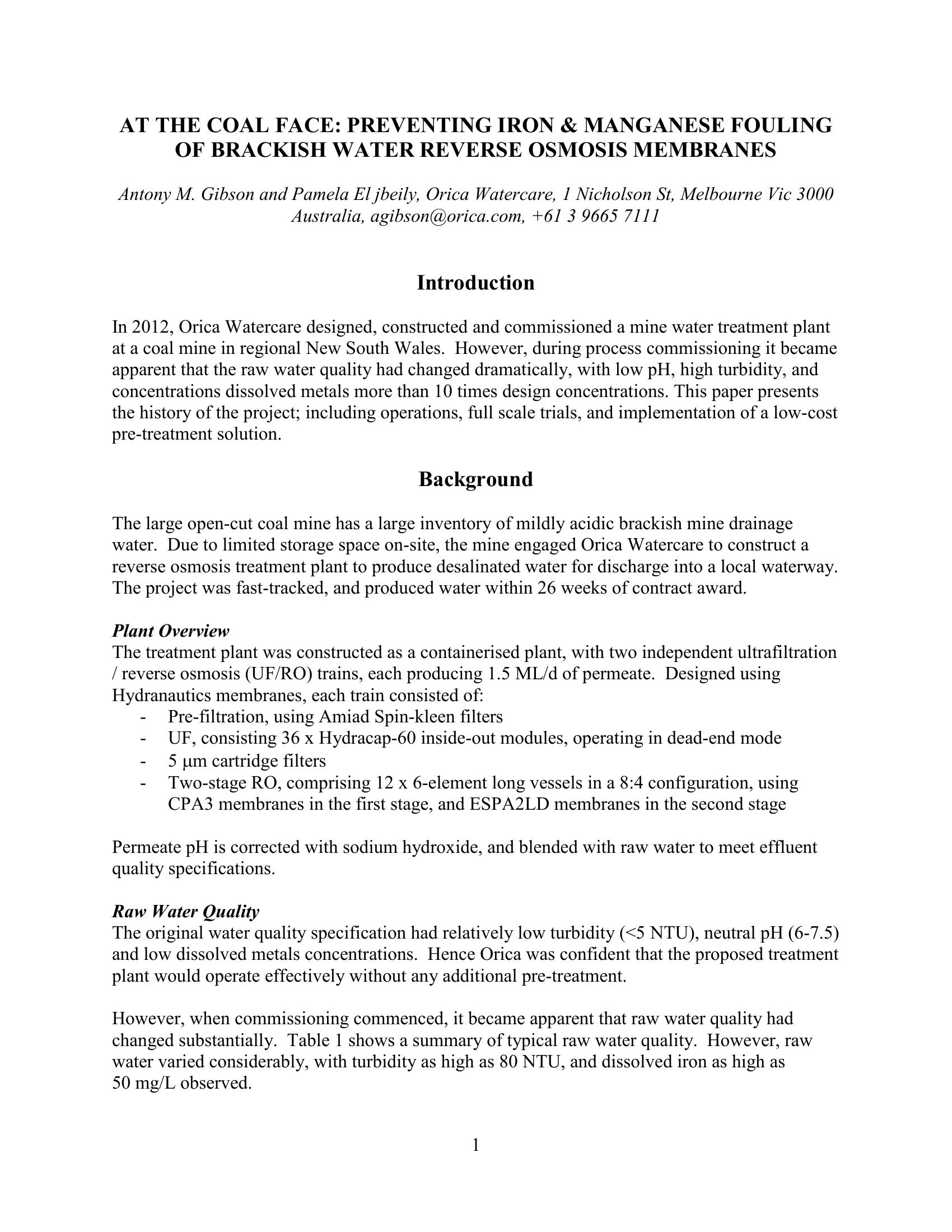 At the Coal Face: Preventing Iron & Manganese Fouling of Brackish Water Reverse Osmosis Membranes