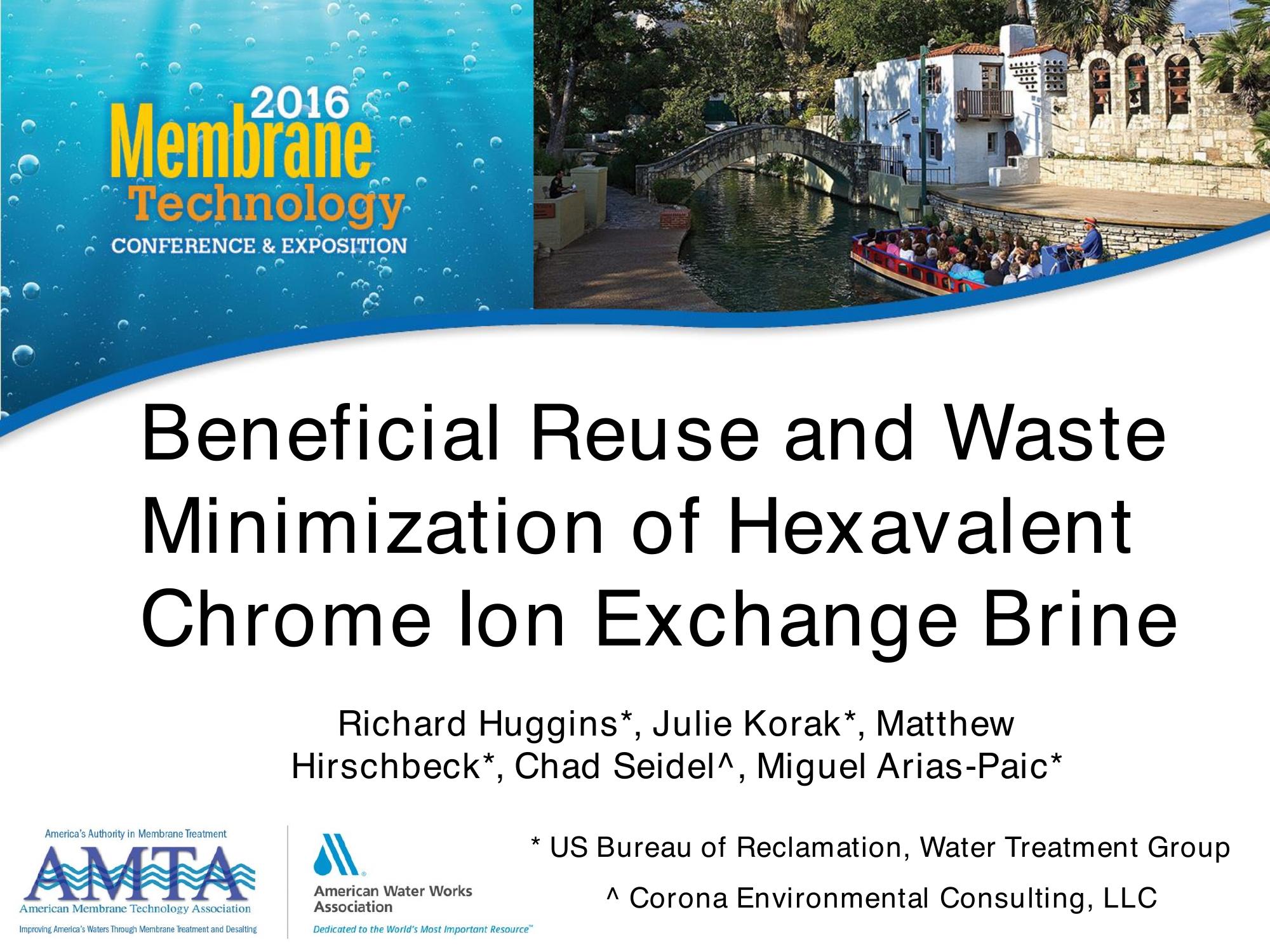 This PowerPoint presentation describes the beneficial reuse and water minimization of hexavalent chromium ion exchange brine.