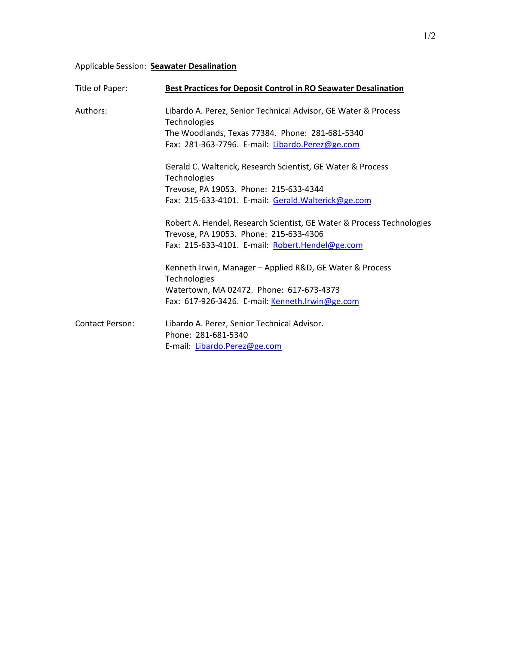 | Keywords | fouling, pretreatment, RO |