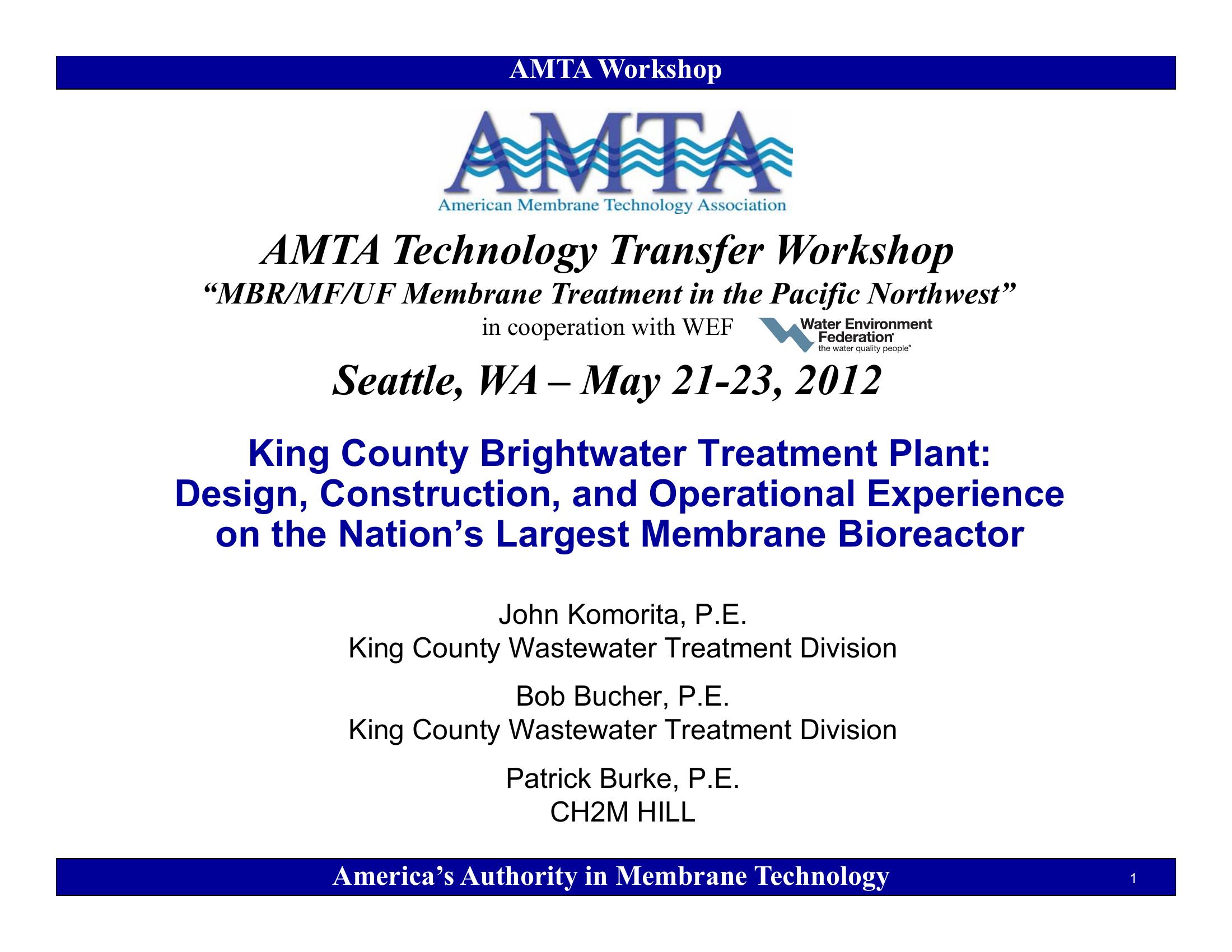 Brightwater Treatment Plant : Design, Construction, and Operational Experiences for the Nations Largest MBR