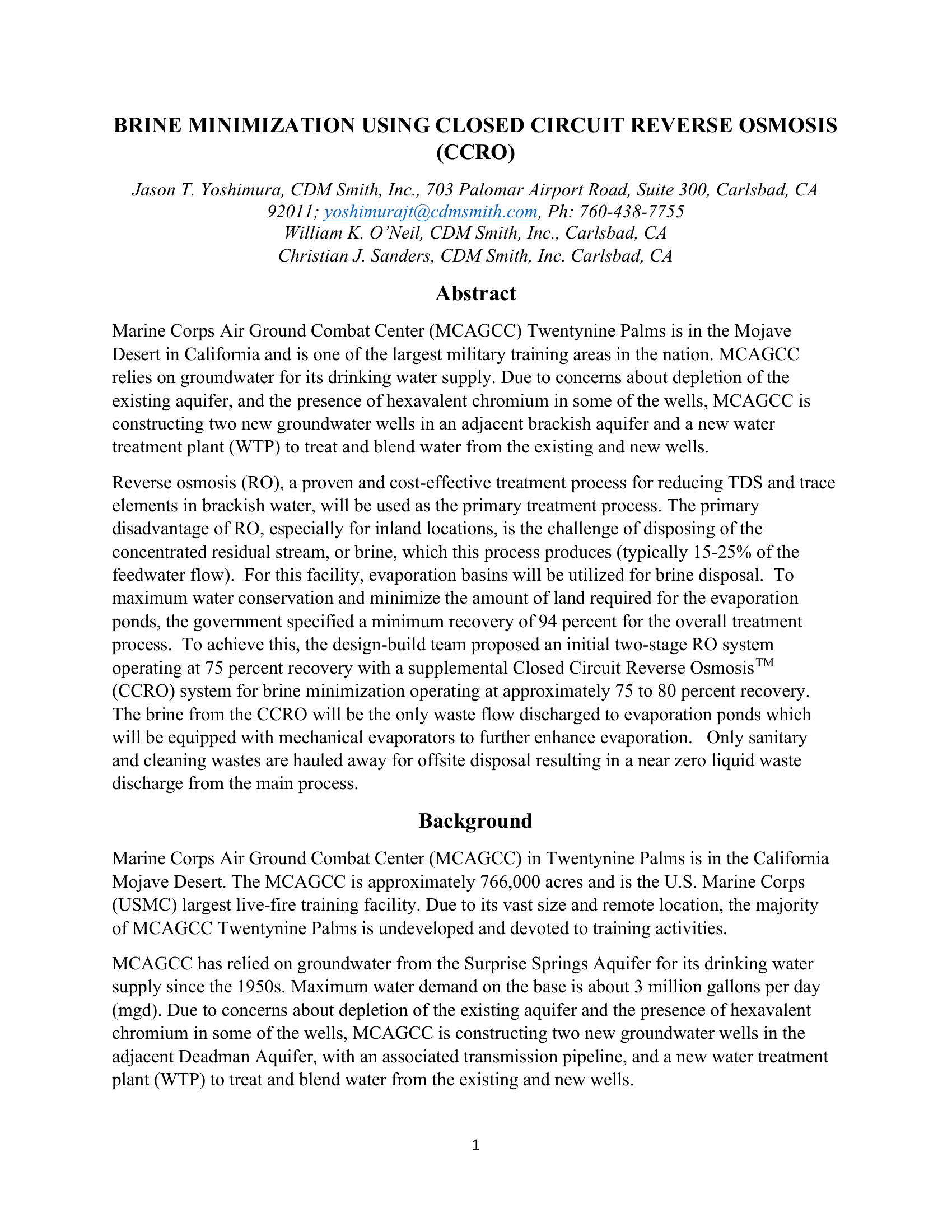Brine Minimization Using Closed Circuit Reverse Osmosis (CCRO)
