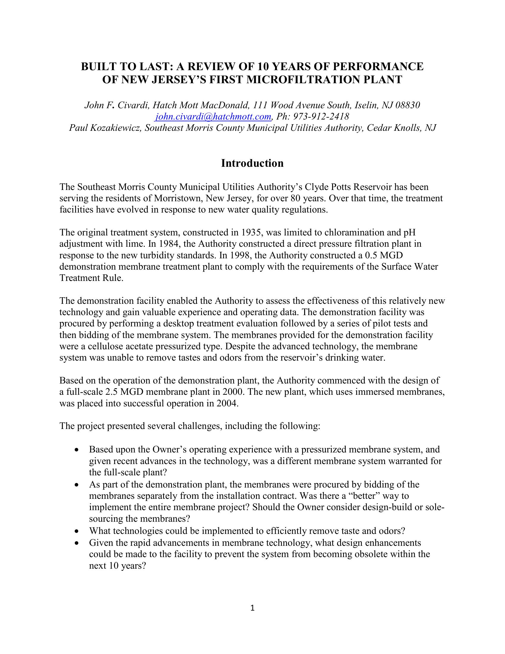 Built To Last: A Review of 10 Years of Performance of New Jersey’s First Microfiltration Plant