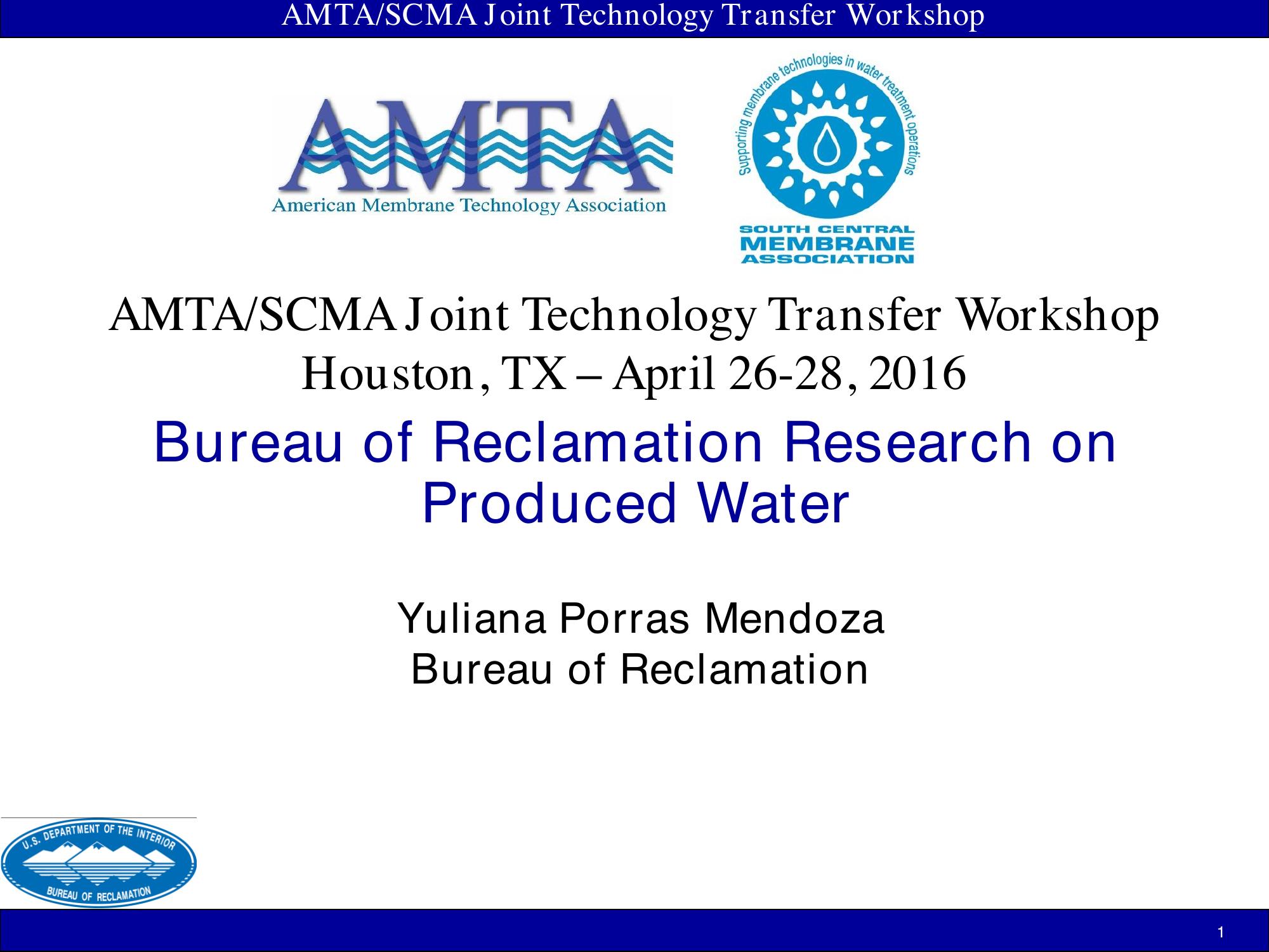 This presentation will provide an update on the last four years of research funded by Reclamation on produced water technologies. Each technology has varying positive and negative aspects with respect to chemical requirements, energy requirements, footprint, cost, and removal capability. General information is included on a number of categories of applied technologies, including: a brief technology description, applicable contaminants removed, removal mechanisms, and qualitative notes on advantages and disadv antages. The quality of produced water varies significantly based on the geochemistry of the producing formation, the type of hydrocarbon produced, and the characteristics of the producing well. If produced water meets appropriate water quality criteria, it may be used beneficially for purposes such as irrigation, livestock watering, aquifer storage, streamflow augmentation, and municipal and industrial uses.