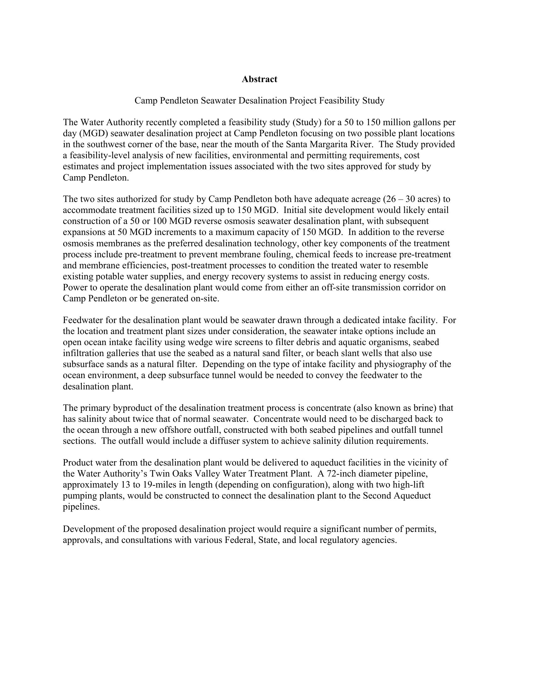 | Keywords | feasibility analysis, Camp Pendleton desalination |