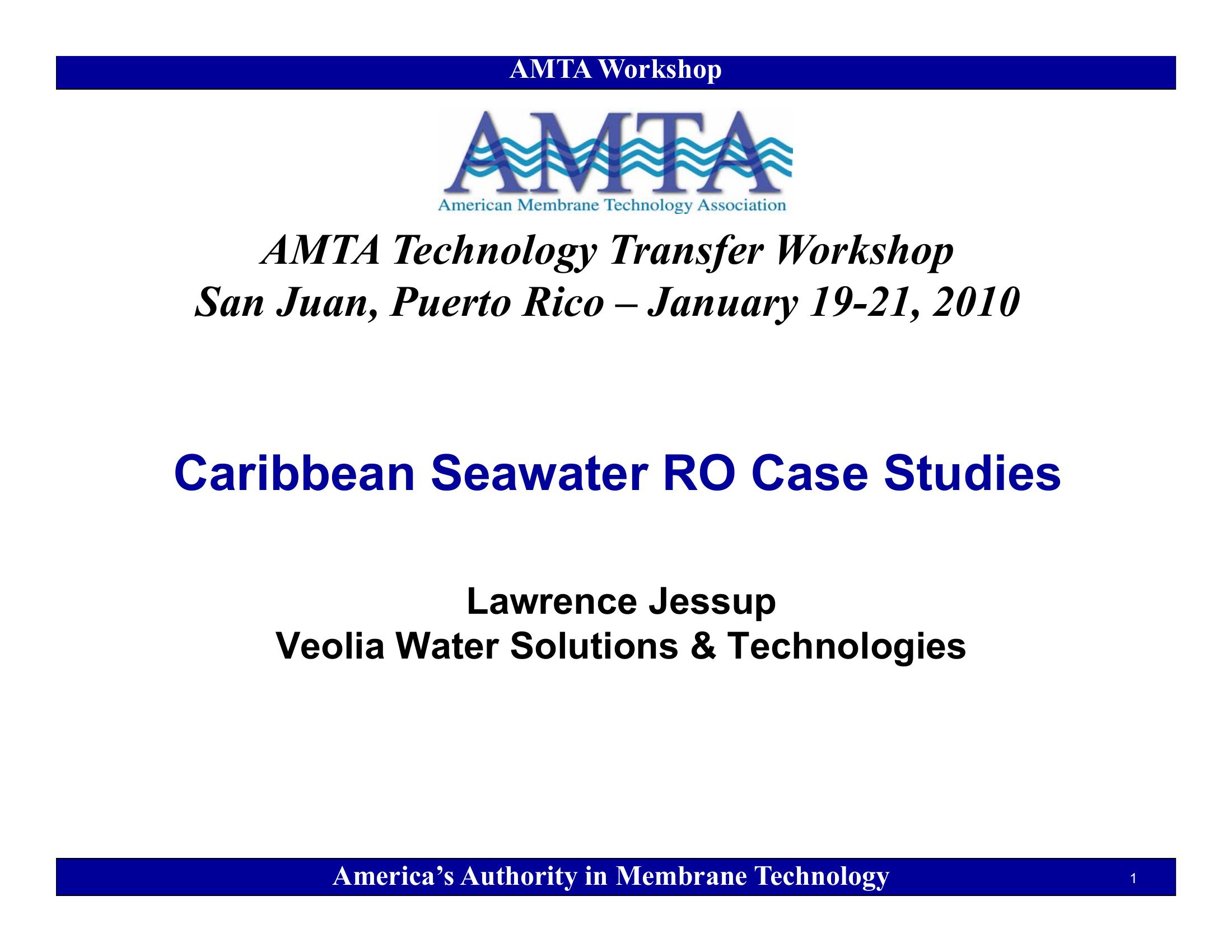 This powerpoint presents an overview of water supply conditions for various islands in the Caribbean region and draws upon desalination plant case studies in St. Martin and San Andres