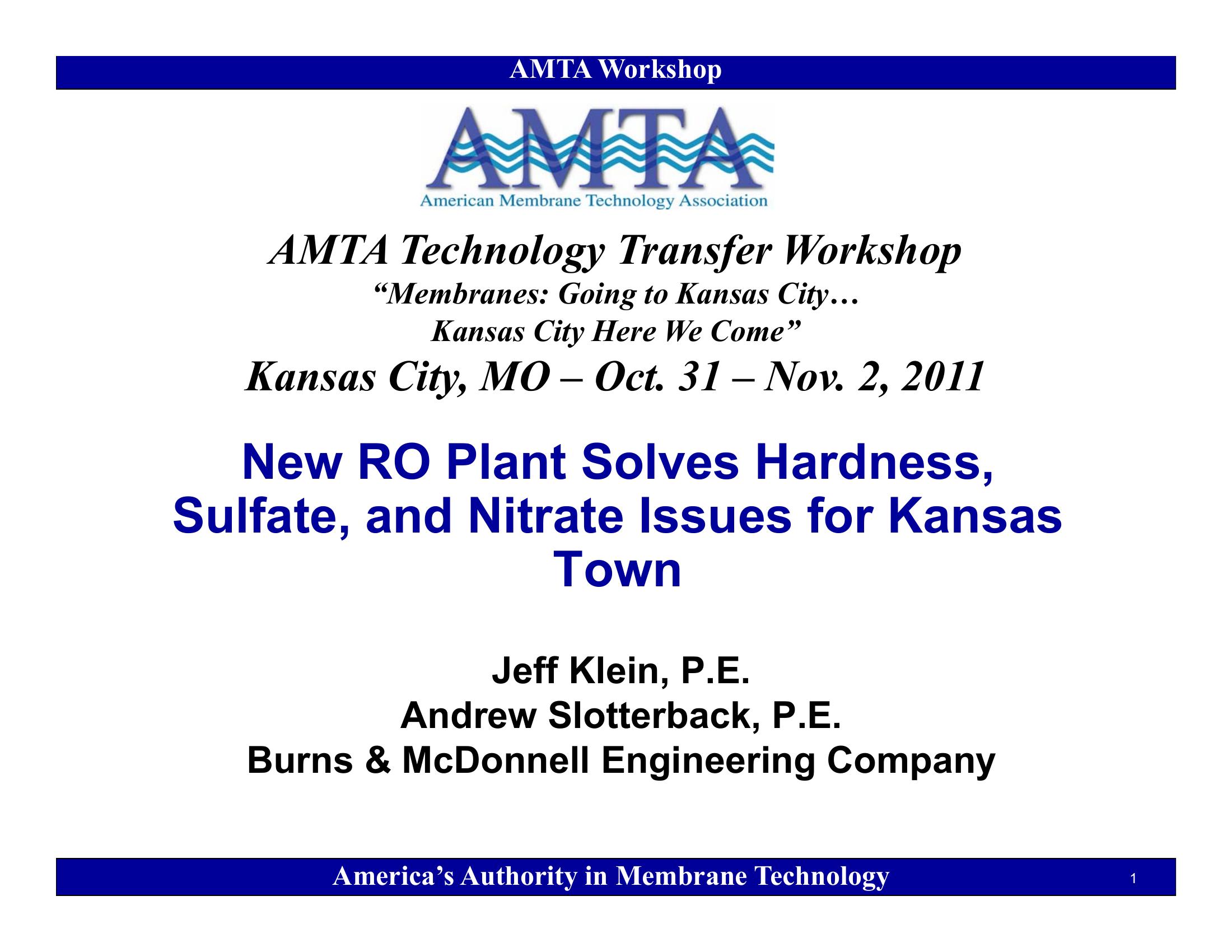 This presentation provides an overview of a new RO Plant to resolve hardness, sulfate, and nitrate Issues. Reference is made to how pilot testing provided valuable data for final design. The selected membrane and chemicals allowed for