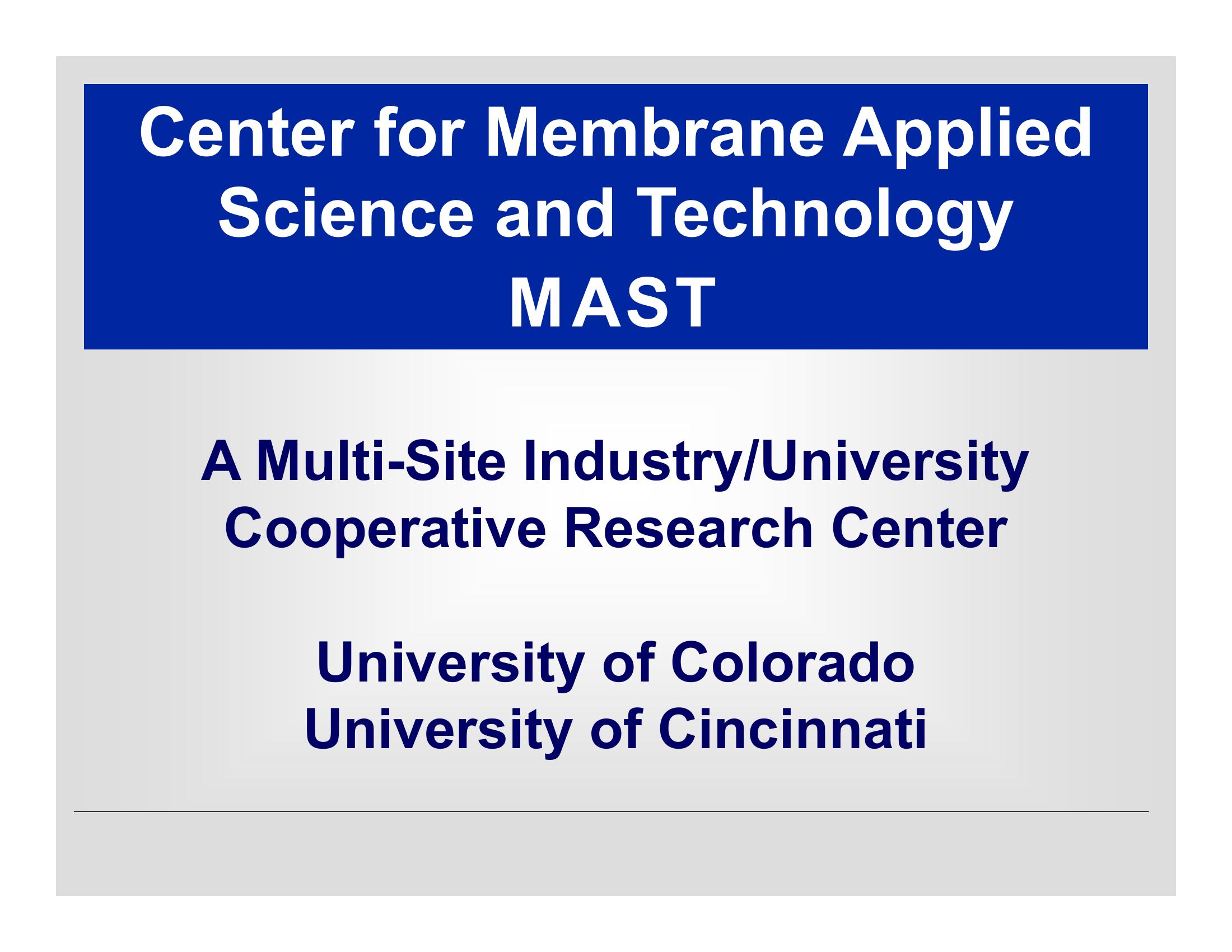 Center for Membrane Applied Science and Technology Research at the University of Colorado