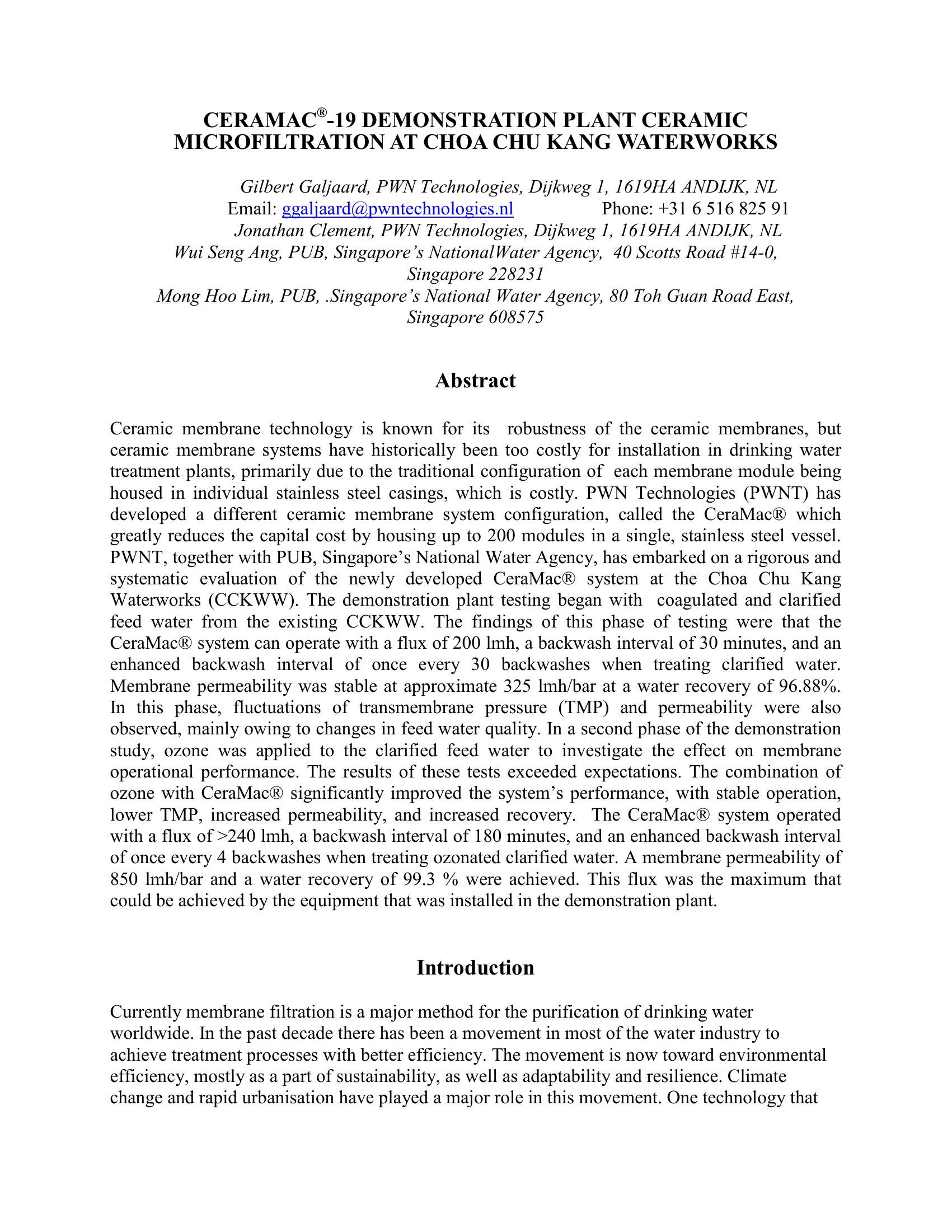 Ceramac-19 Demonstration Plant Ceramic Microfiltration at Choa Chu Kang Waterworks