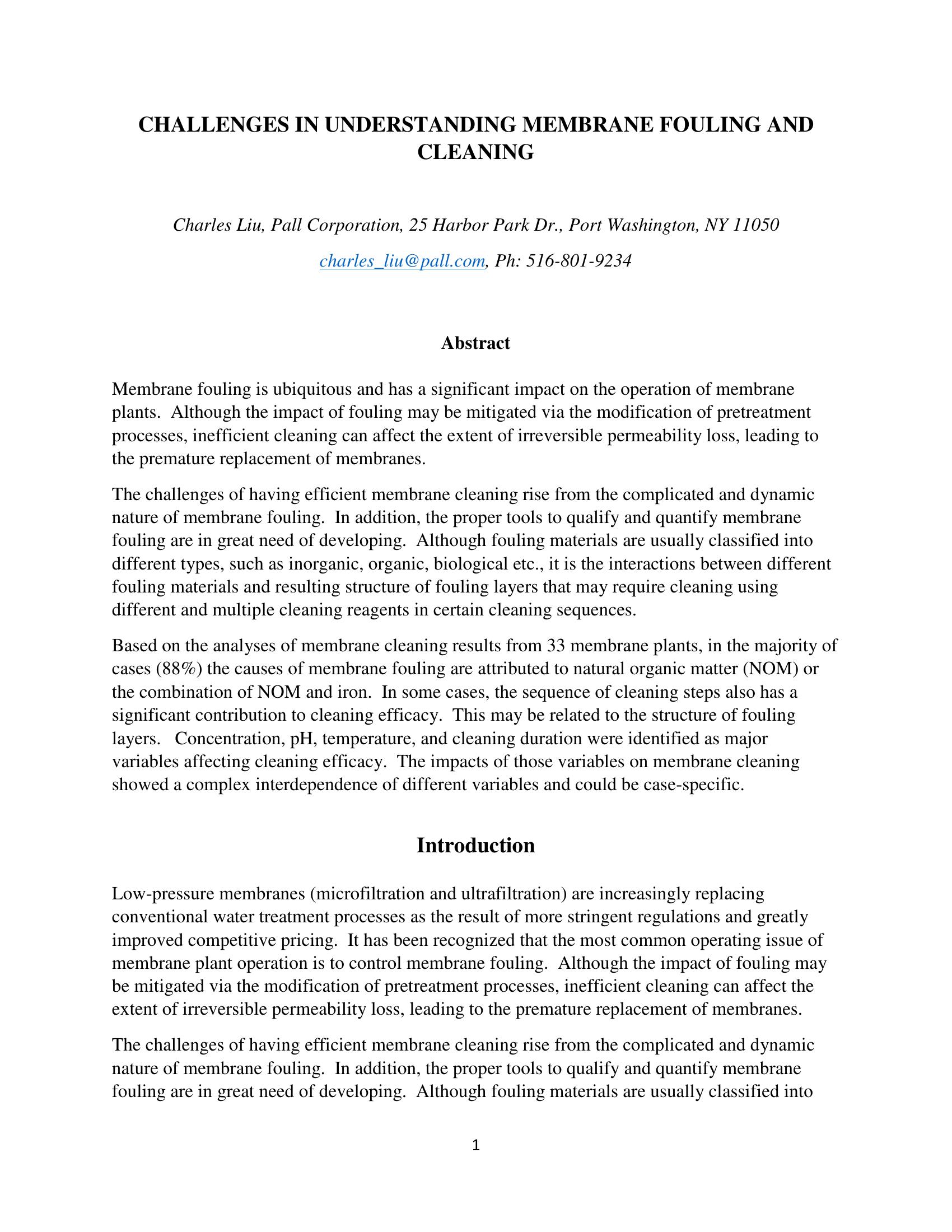 | Keywords | Membrane, Ultrafiltration, Microfiltration, Cleaning, Fouling |