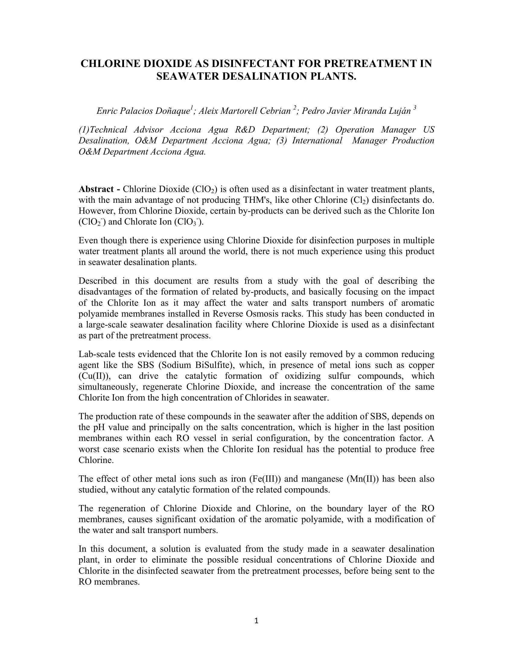 | Keywords | Chlorine Dioxide, Disinfectant, Seawater |