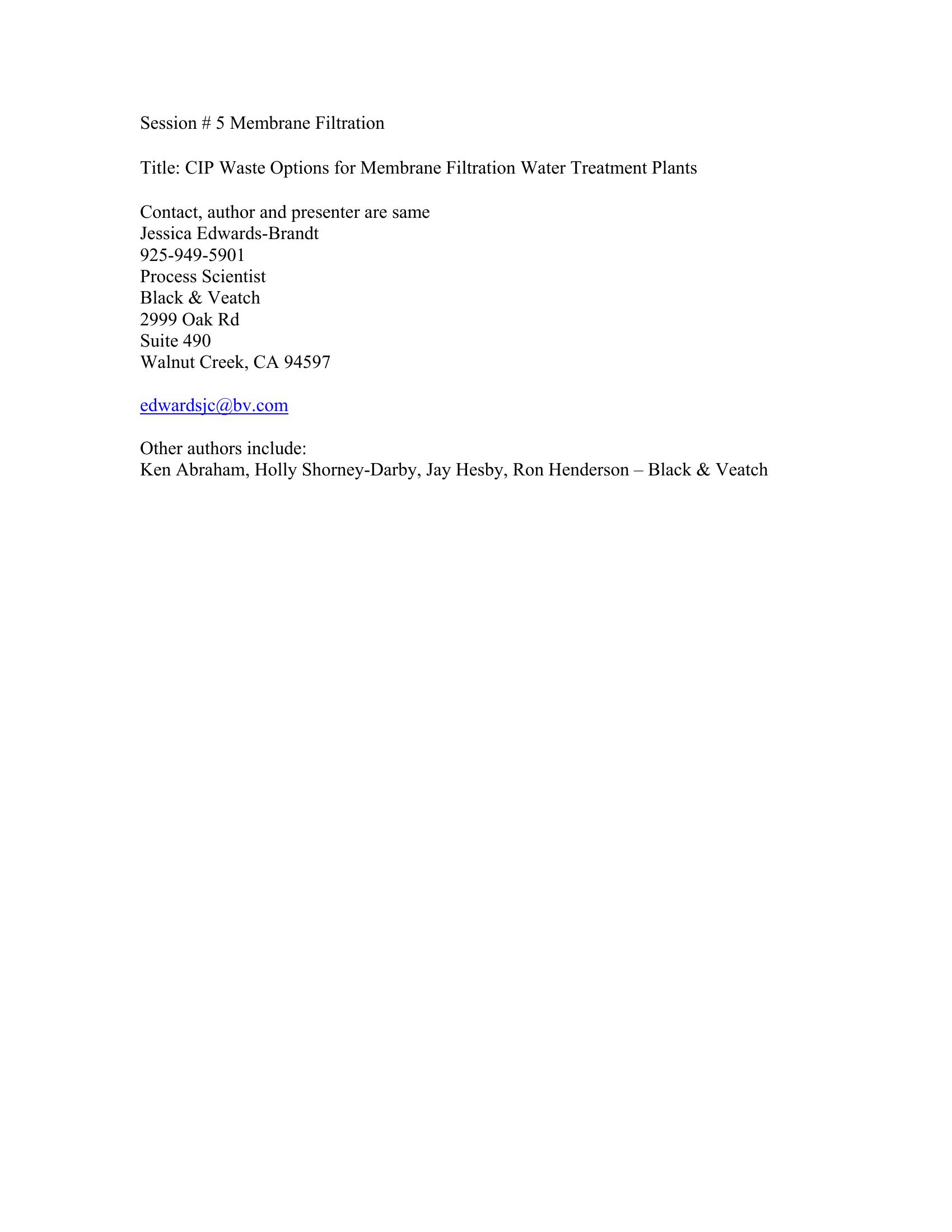 CIP Waste Options for Membrane Filtration Water Treatment Plants
