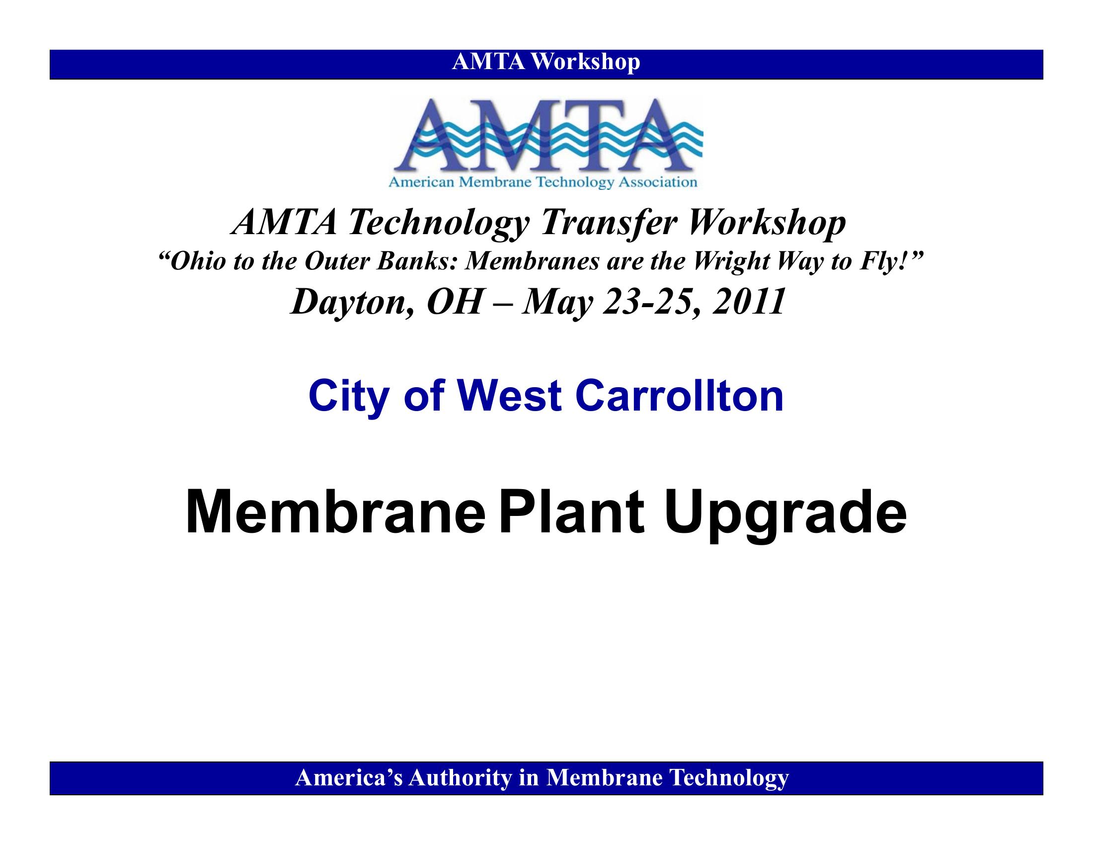 This presentation provides a detailed time line and step by step pictorial presentation of a membrane plant upgrade process for City of West Carrollton.