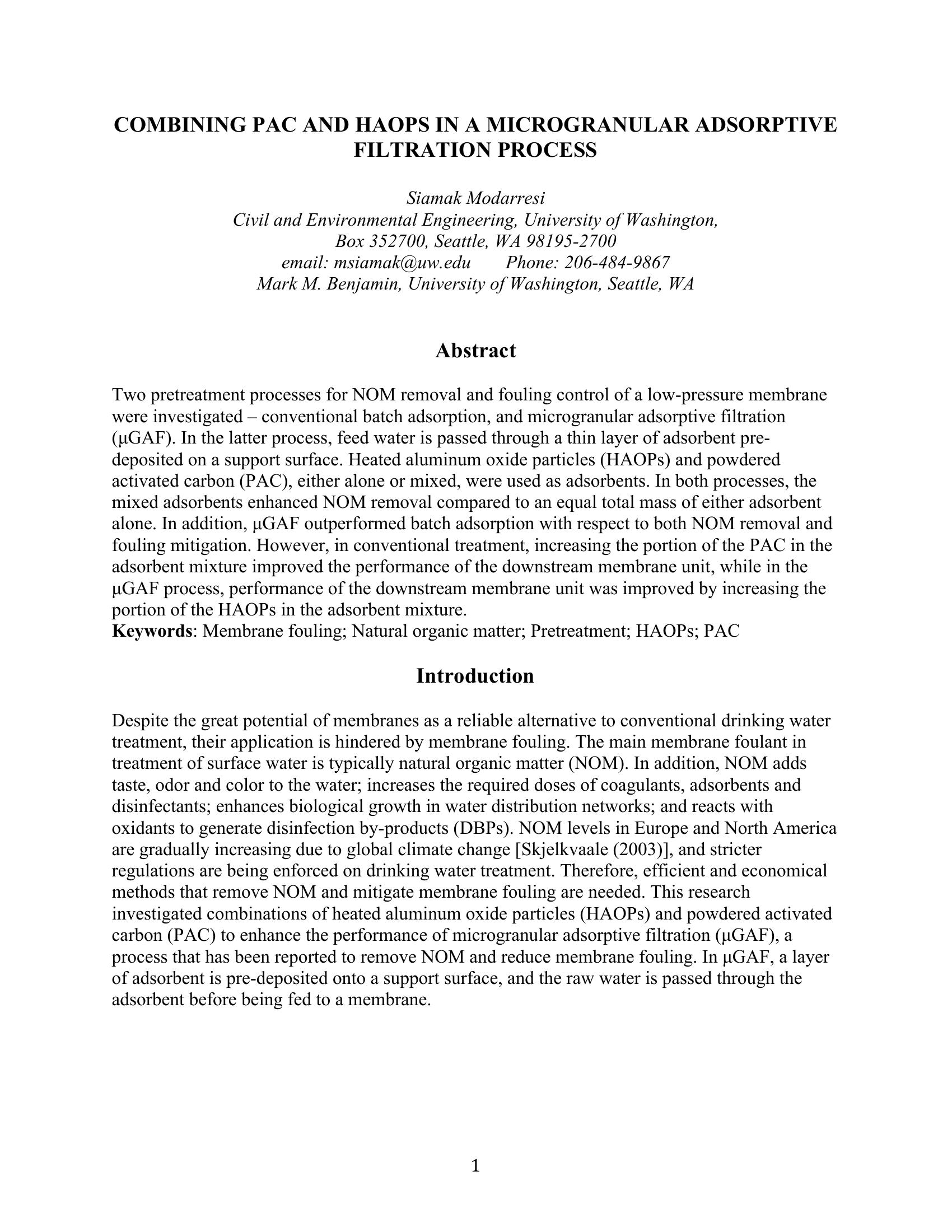 Combining PAC, Haops and Microgranular Adsorptive Filtration to Enhance Membrane Performance