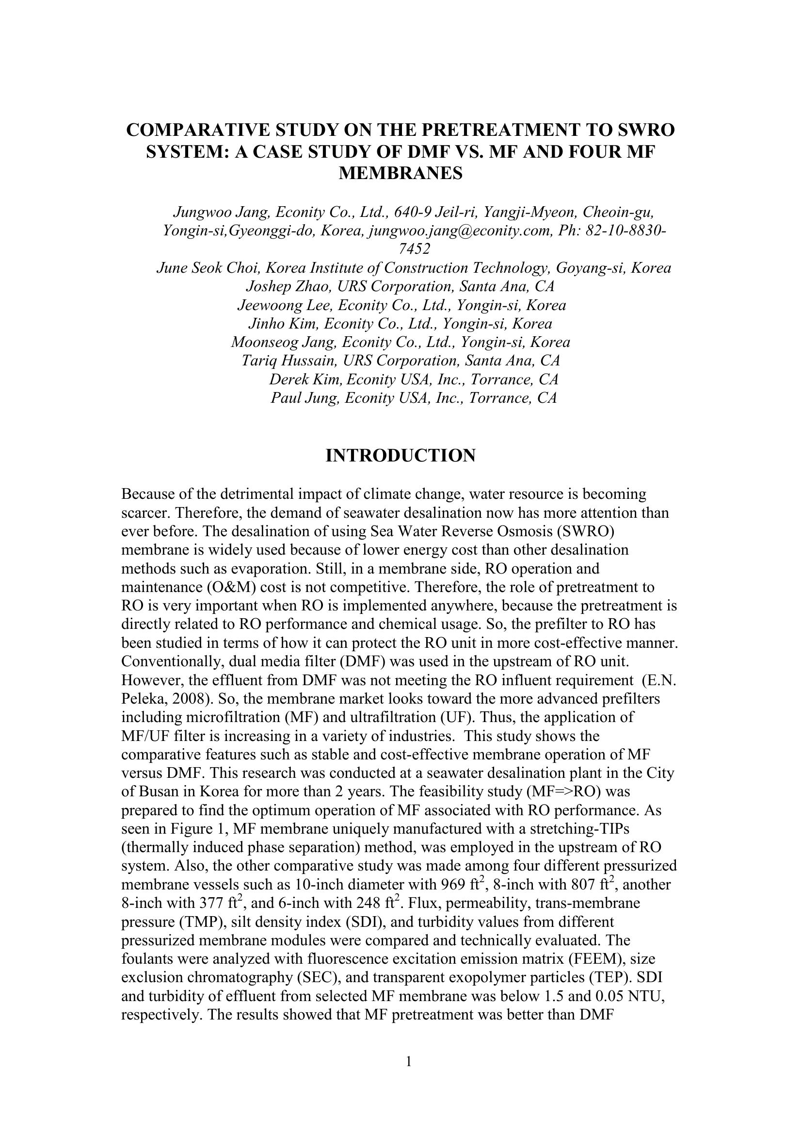 | Keywords | microfiltration, Pretreatment, SWRO, DMF |