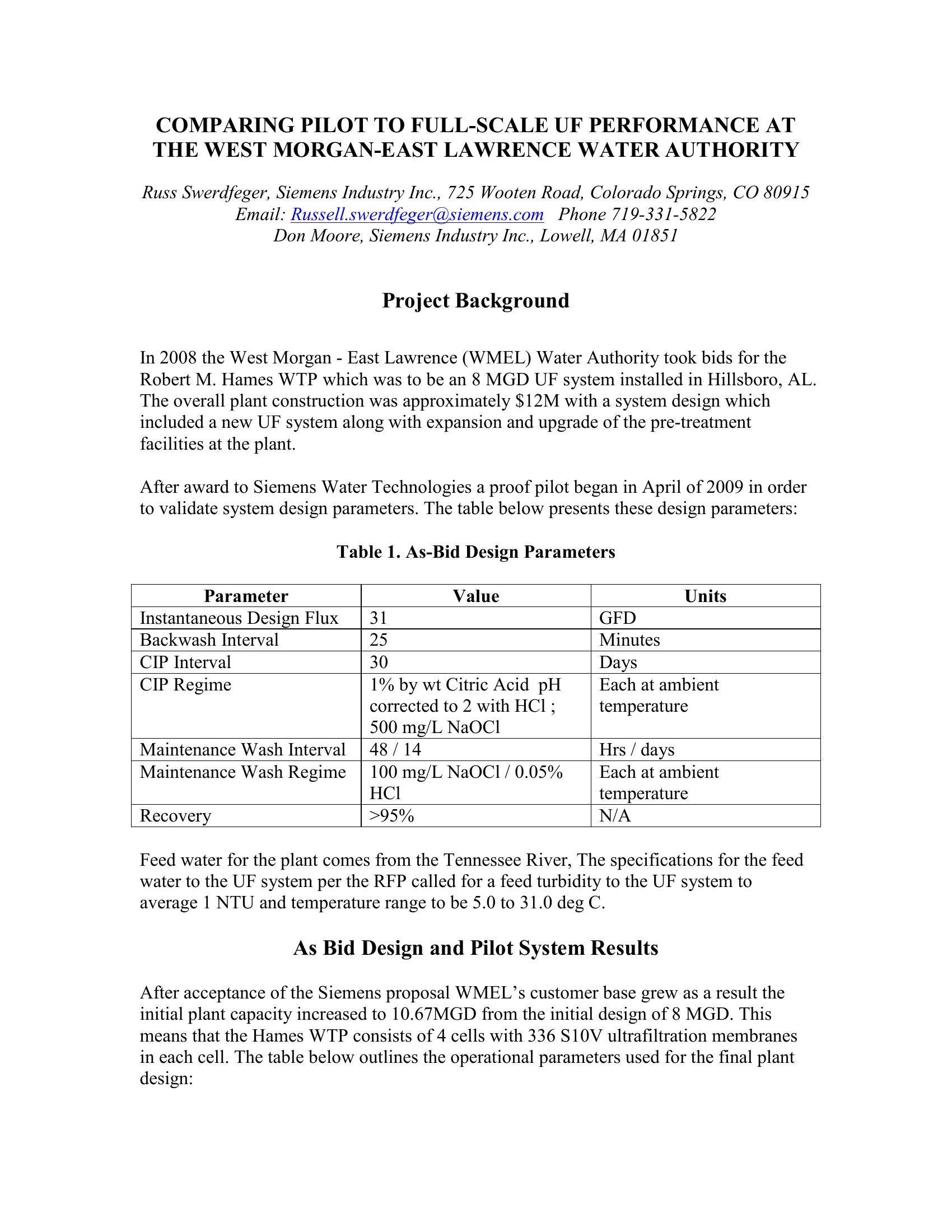 Comparing Pilot to Full-Scale UF Performance at the West Morgan-East Lawrence Water Authority